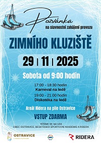 Přijďte se podívat na slavnostní zahájení provozu zimního kluziště, které se koná 29. listopadu 2025 od 17:00 hodin. Akce nabídne karneval na ledě a diskotéku na ledě. Těšíme se na vaši účast a společně strávené chvíle.