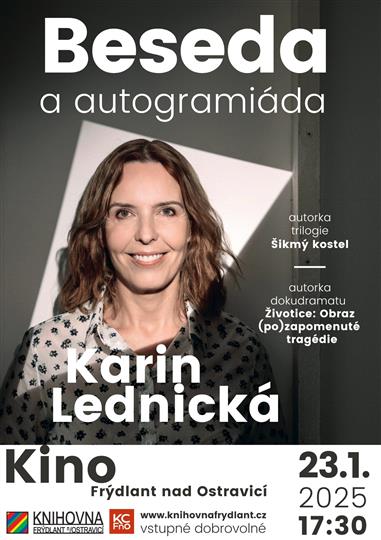 Zveme vás na besedu a autogramiádu s Karin Lednickou, která se uskuteční