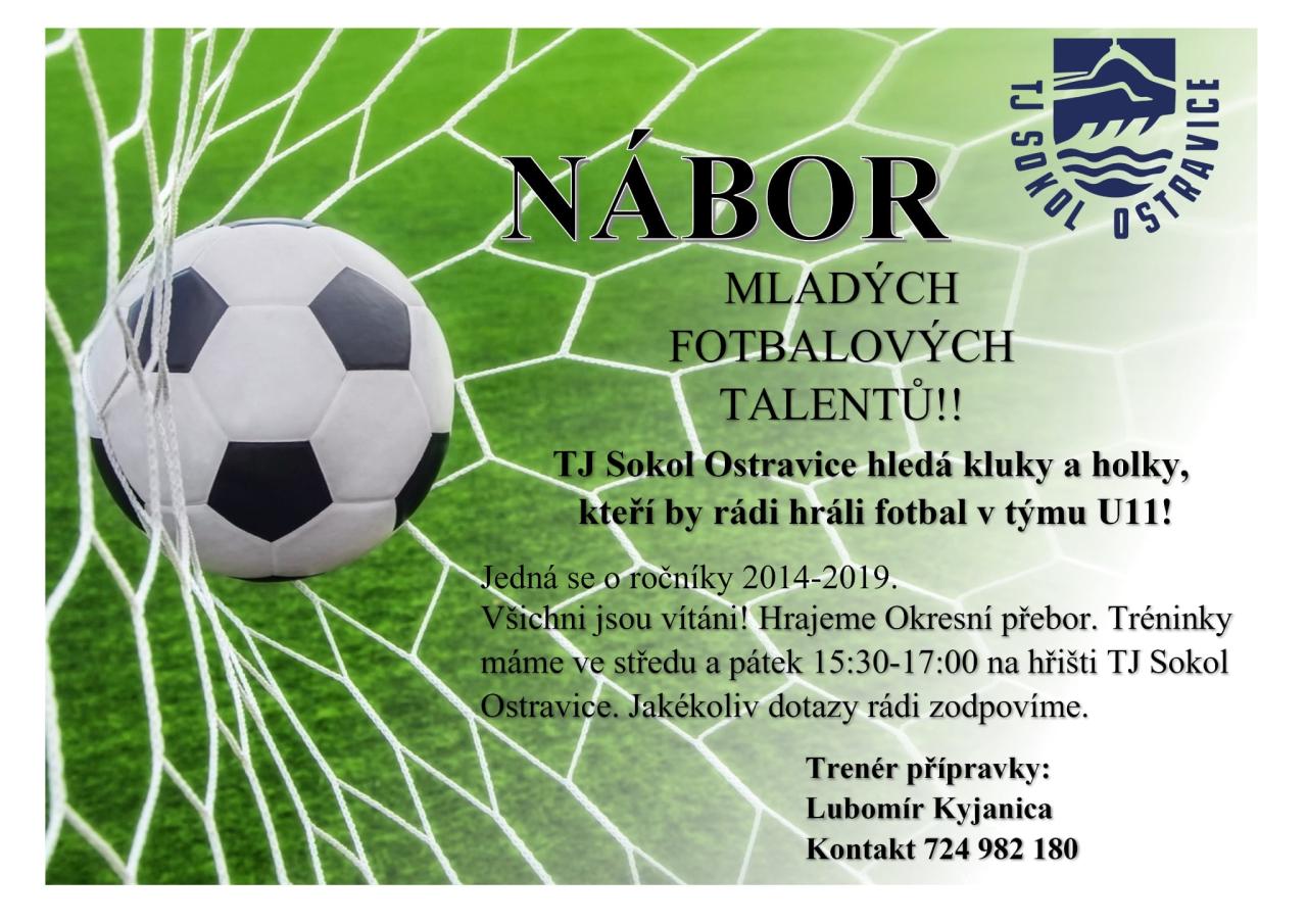 Ostravice hledá nové kluky a holky do týmu U11, kteří mají zájem hrát fotbal. Tréninky probíhají každou středu a pátek od 15:30 do 17:00 na hřišti TJ Sokol.