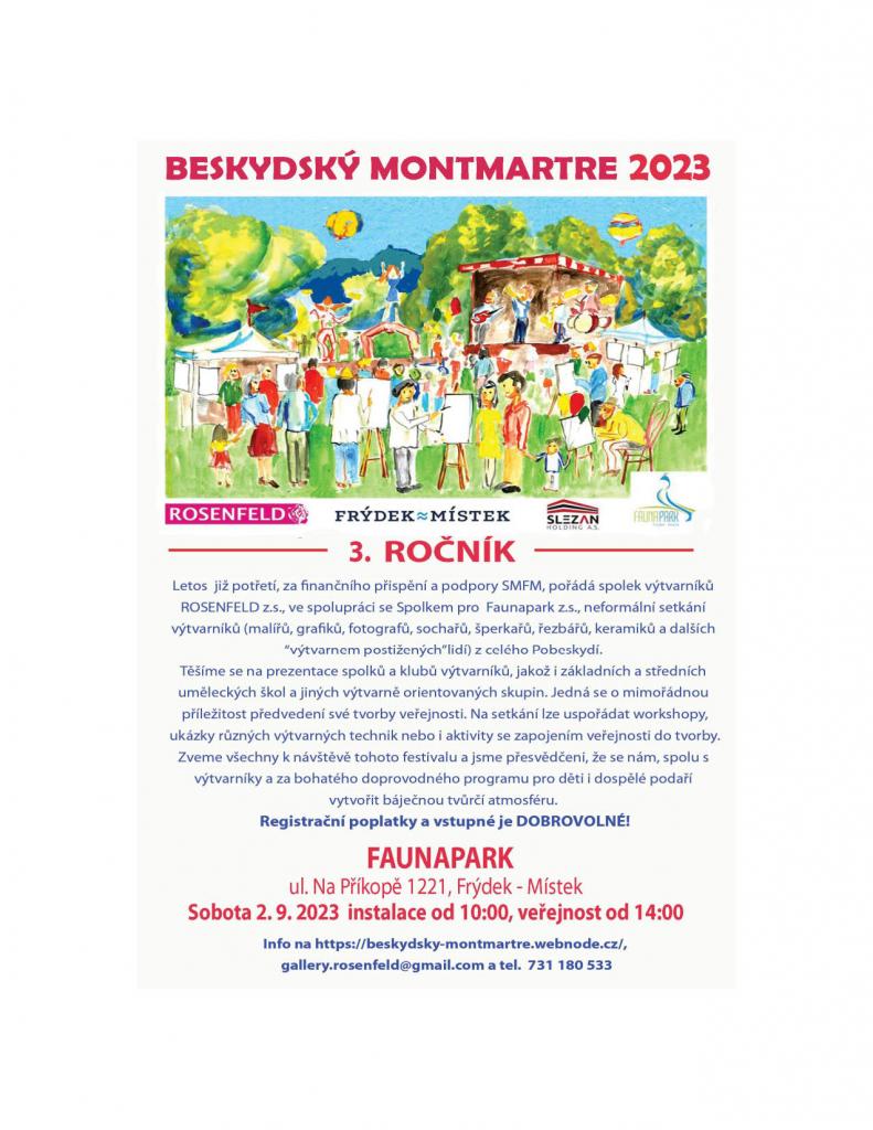 Odvažujeme se Vás požádat o zveřejnění veřejně prospěšné, kulturní akce, jejíž třetí ročník pořádáme ve Faunaparku ve Frýdku-Místku. Jedná se o neformální setkání výtvarníků, výtvarných oborů Základních a středních uměleckých škol, výtvarných klubů a spolků a dalších "výtvarnem postižených“ lidí z celého Pobeskydí. Byli bychom velmi rádi, kdyby se akce zúčastnili i umělci sídlící v působnosti vaší obci a rovněž bychom rádi pozvali vaše příznivce výtvarného umění. Protože na všechny umělce a výtvarné spolky působící ve vaší obci nemáme kontakty (a rádi bychom s nimi navázali kontakt), prosíme o publikování a zveřejnění této pozvánky jakoukoliv cestou, která je ve vaší obci možná.