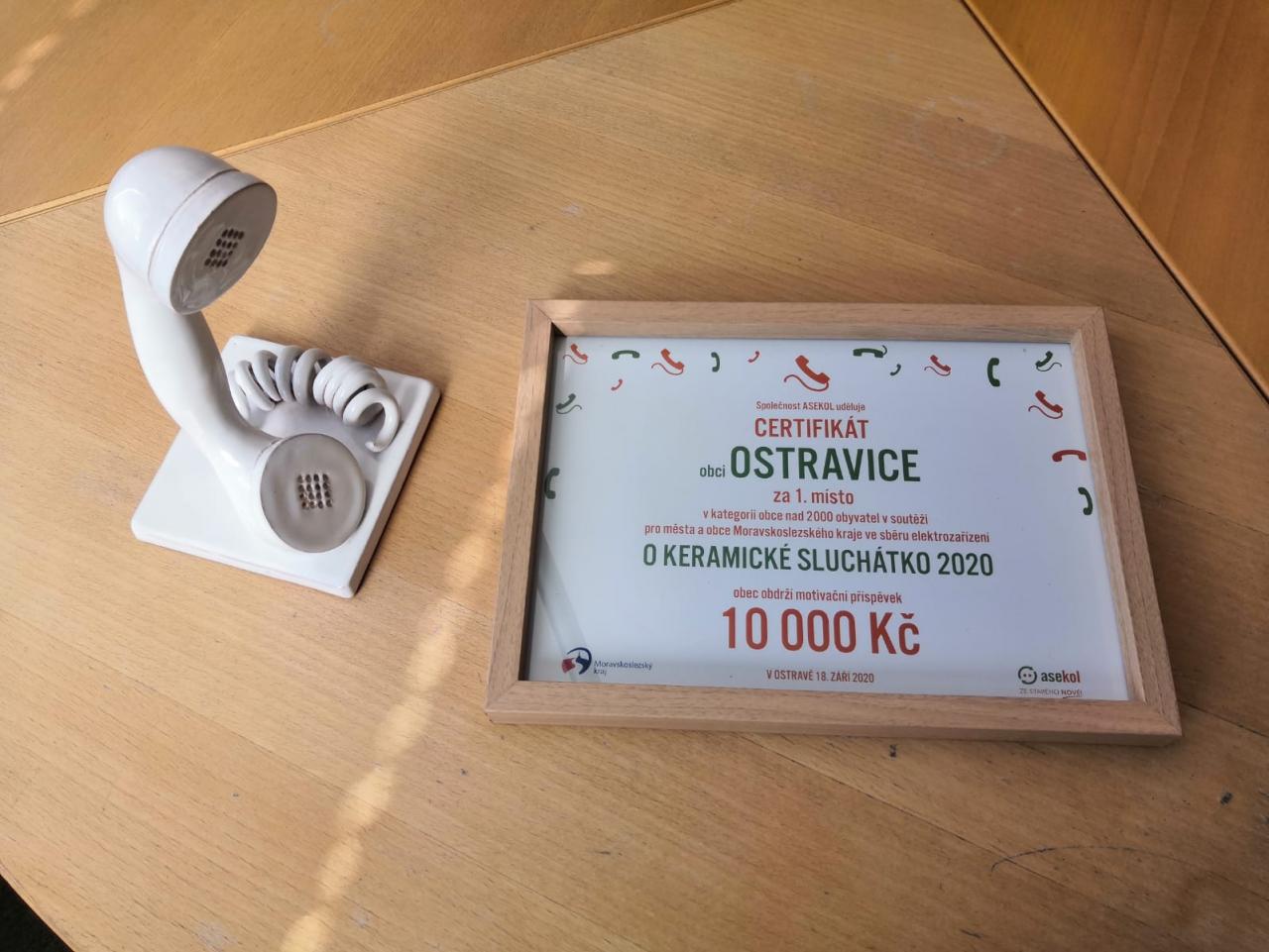 Obec Ostravice získala 1. místo v soutěži O KERAMICKÉ SLUCHÁTKO 2020