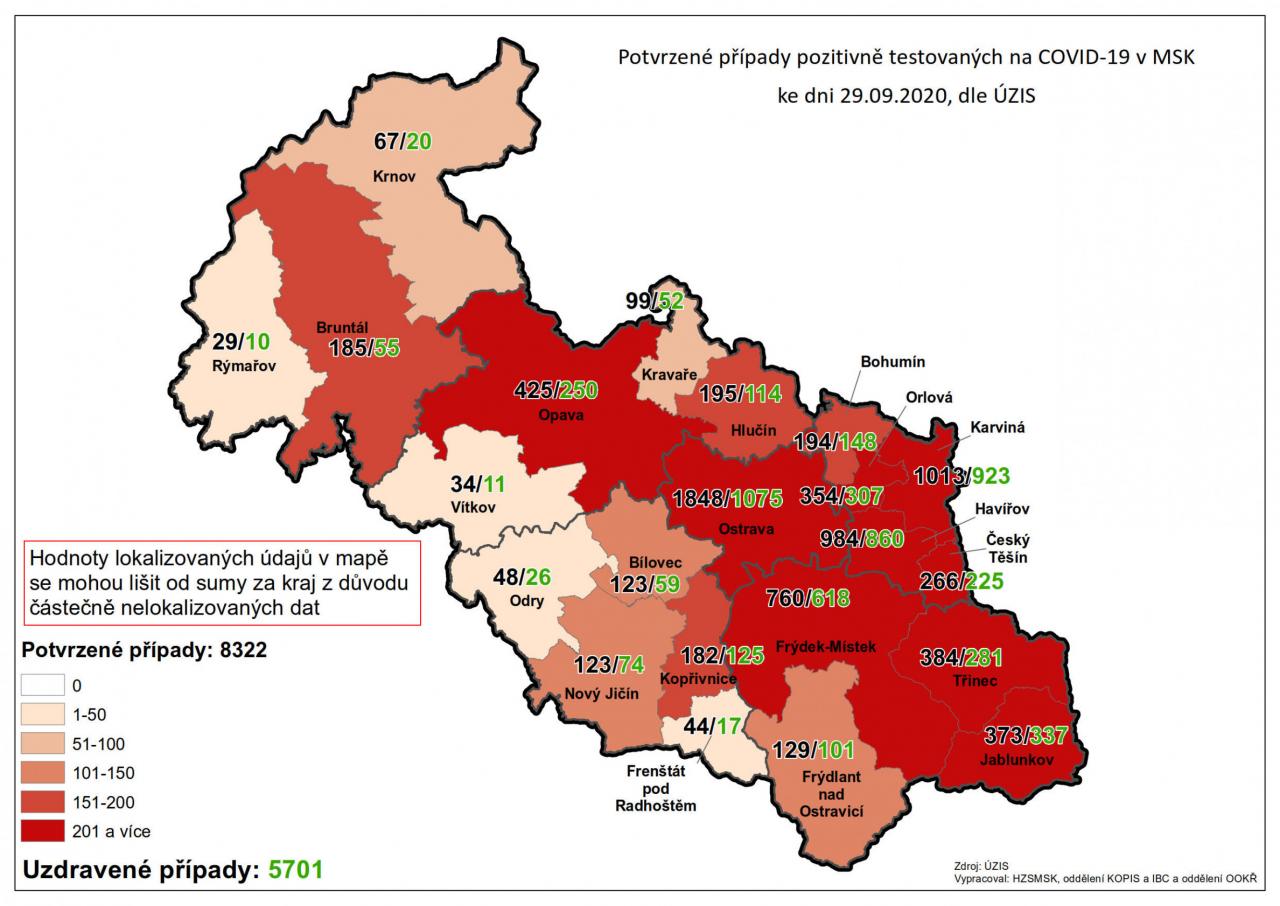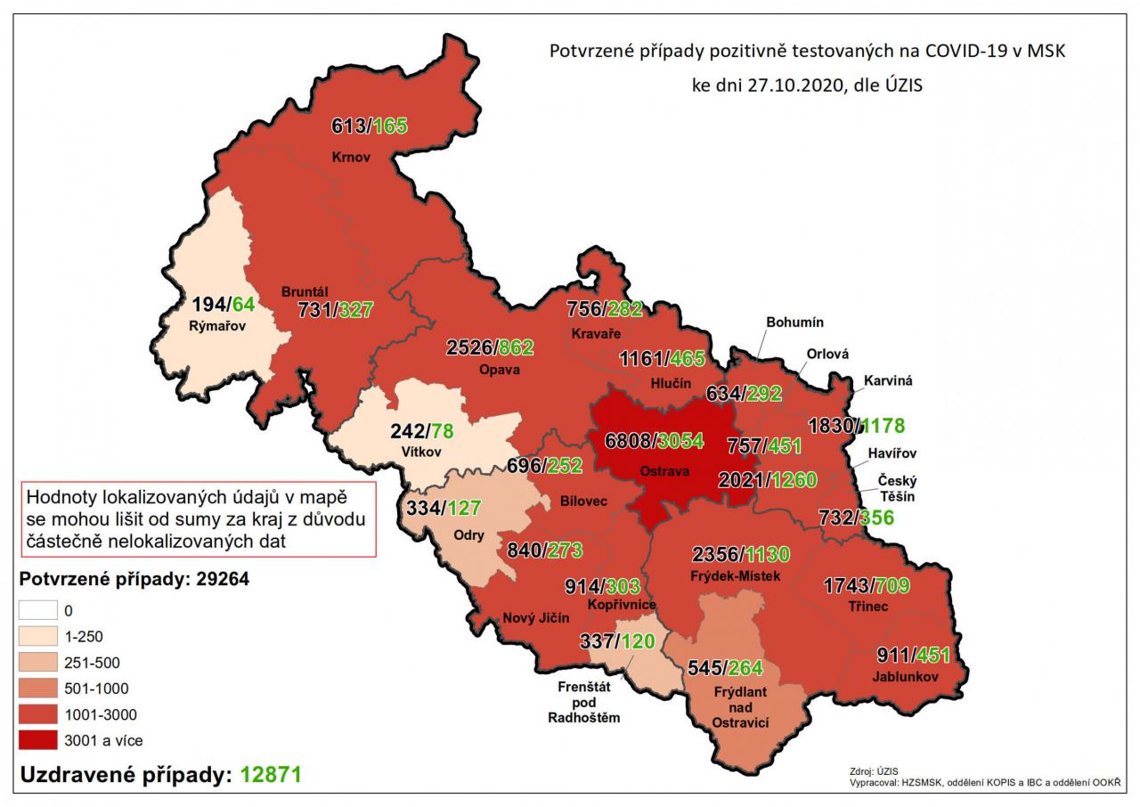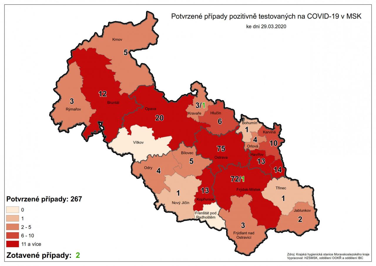 Potvrzené případy testovaných na COVID-19 v MSK 29