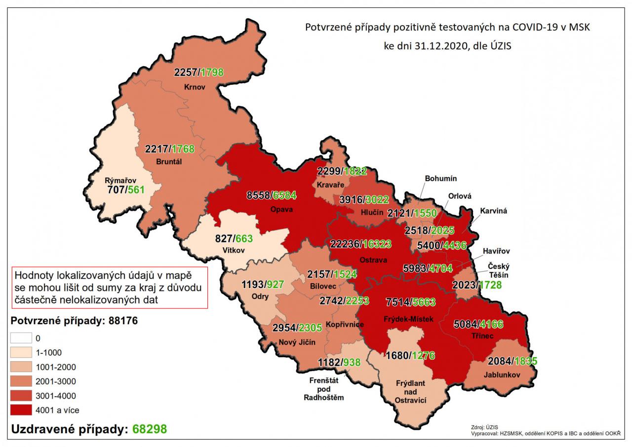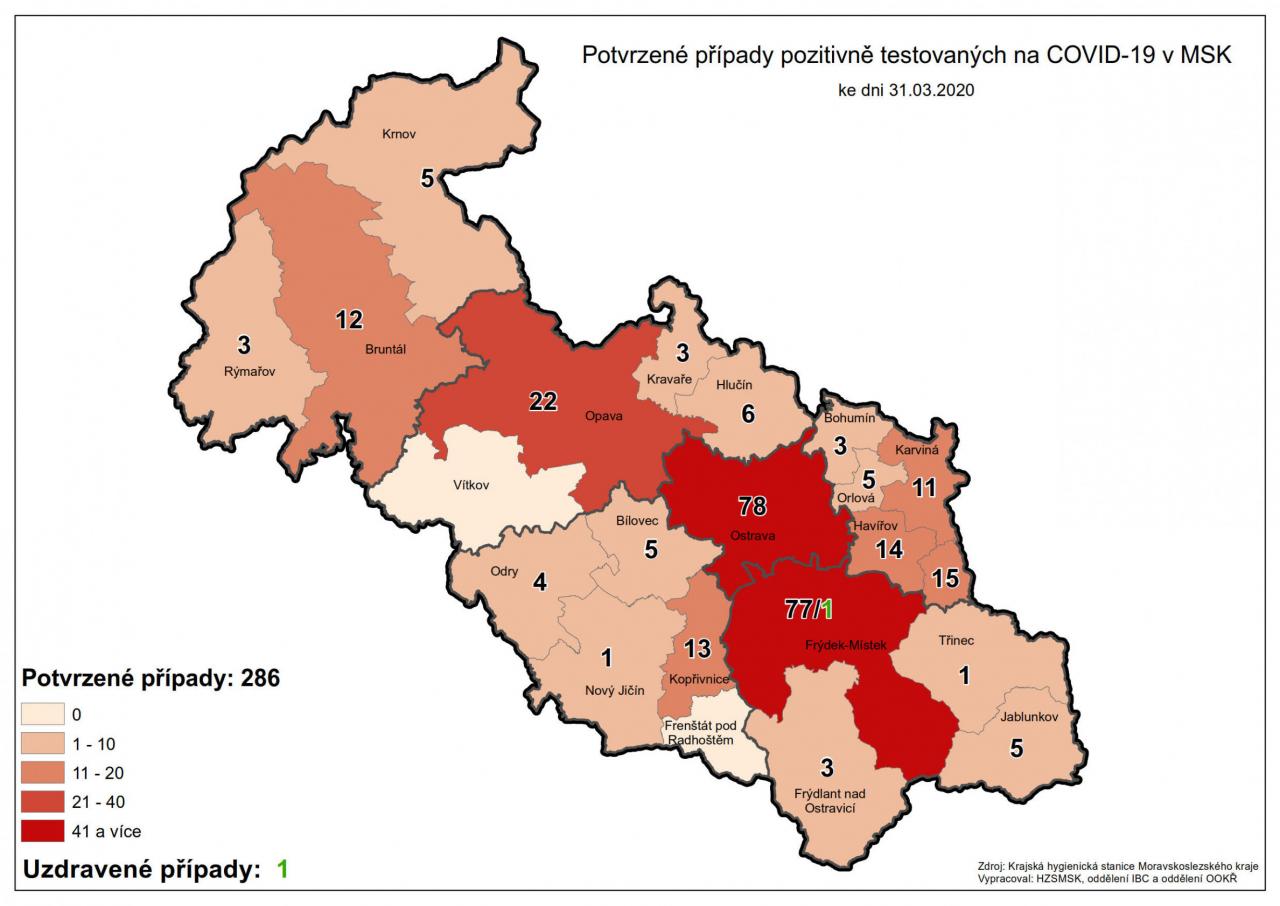 Potvrzené případy testovaných na COVID-19 v MSK 31