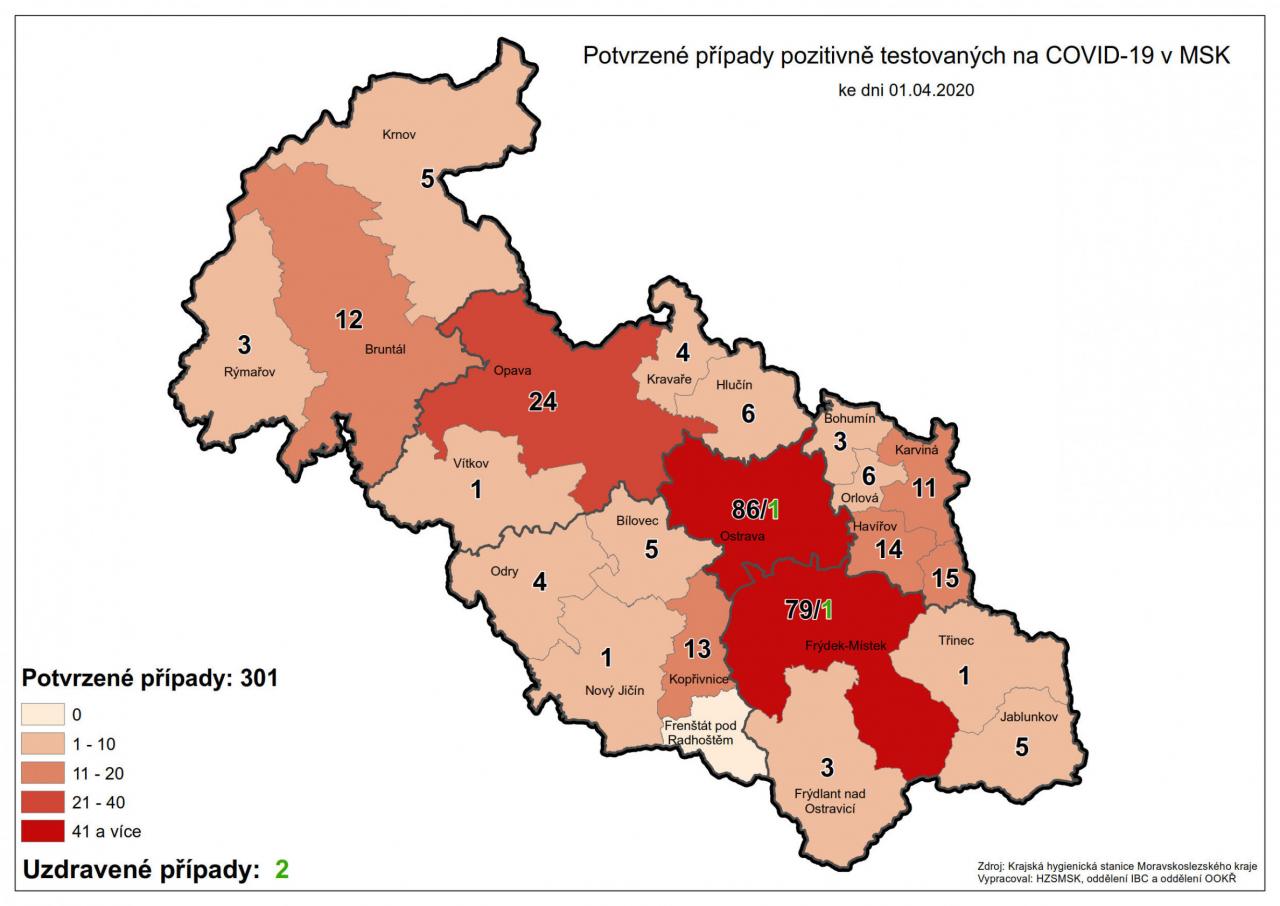 Potvrzené případy testovaných na COVID-19 v MSK 41