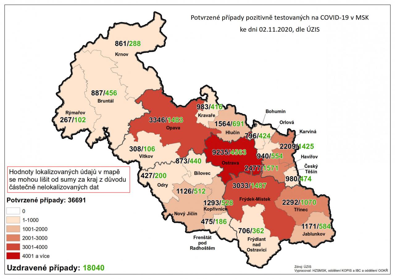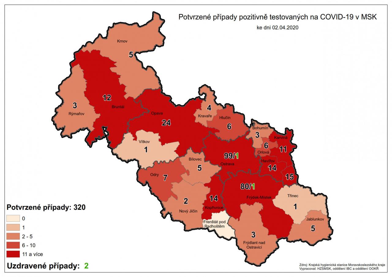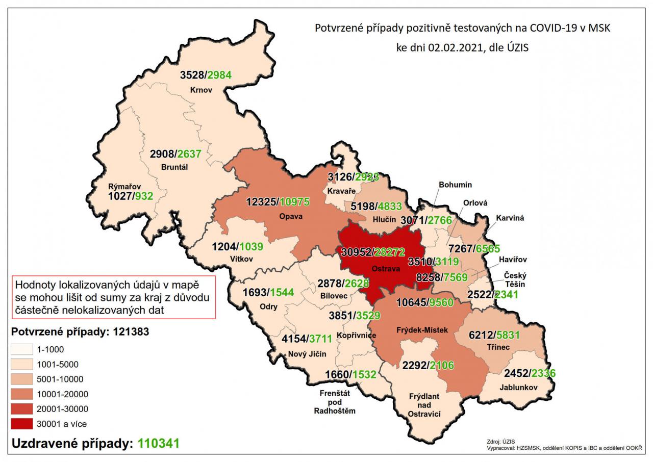 Potvrzené případy testovaných na COVID-19 v MSK 2