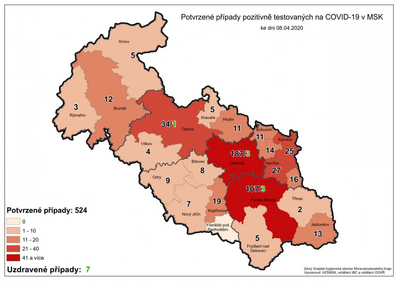 Potvrzené případy testovaných na COVID-19 v MSK 52
