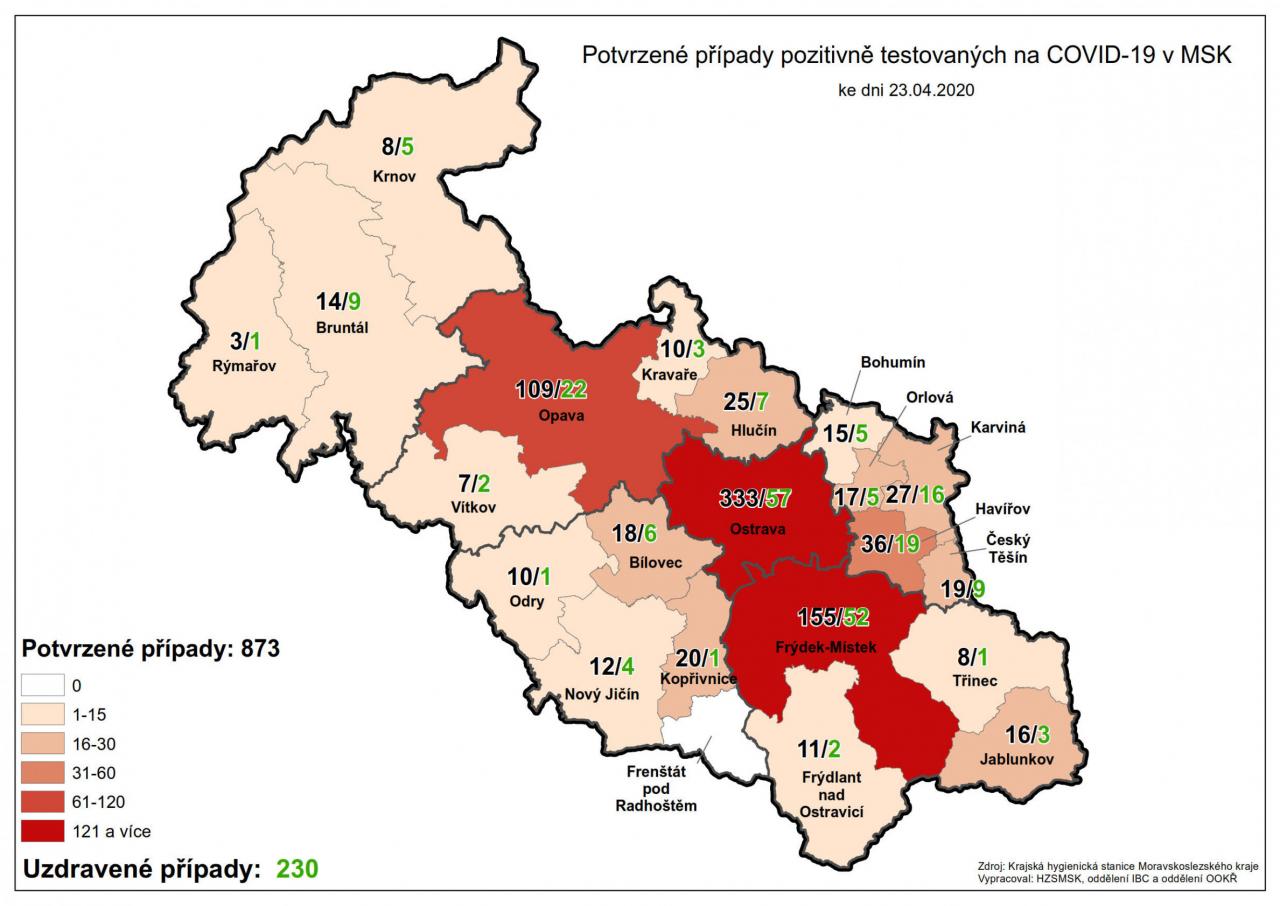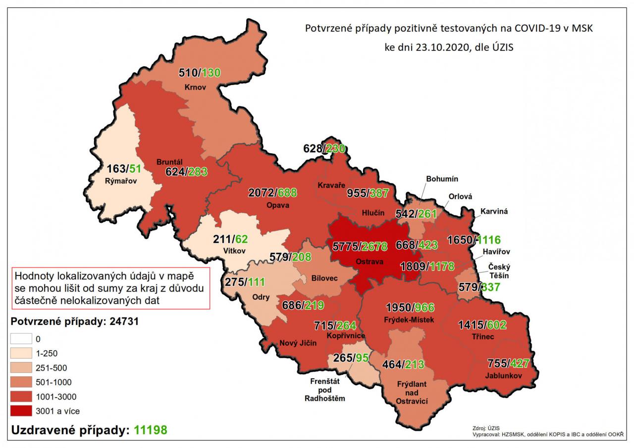 Potvrzené případy testovaných na COVID-19 v MSK 23