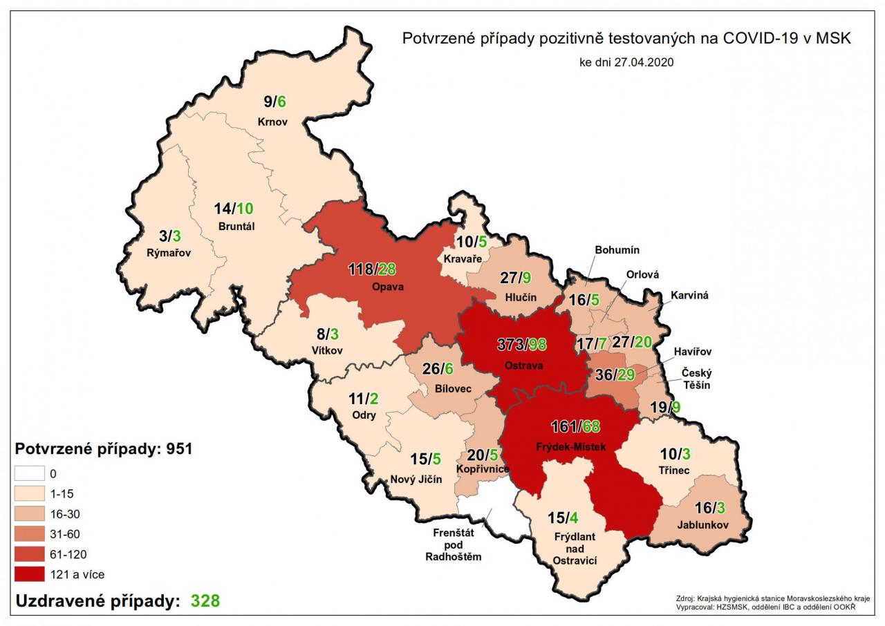 Potvrzené případy testovaných na COVID-19 v MSK 27