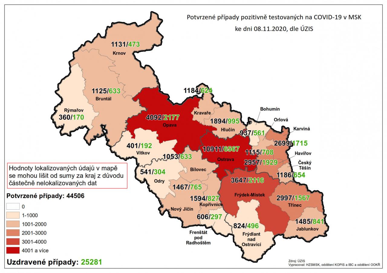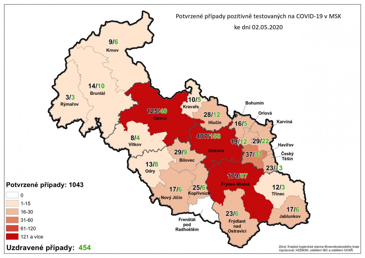 Potvrzené případy testovaných na COVID-19 v MSK 43