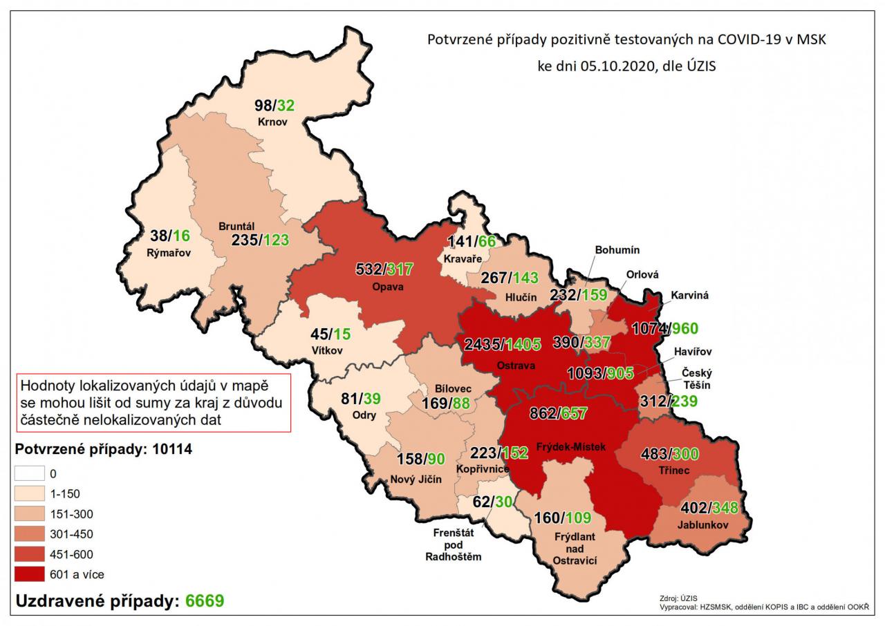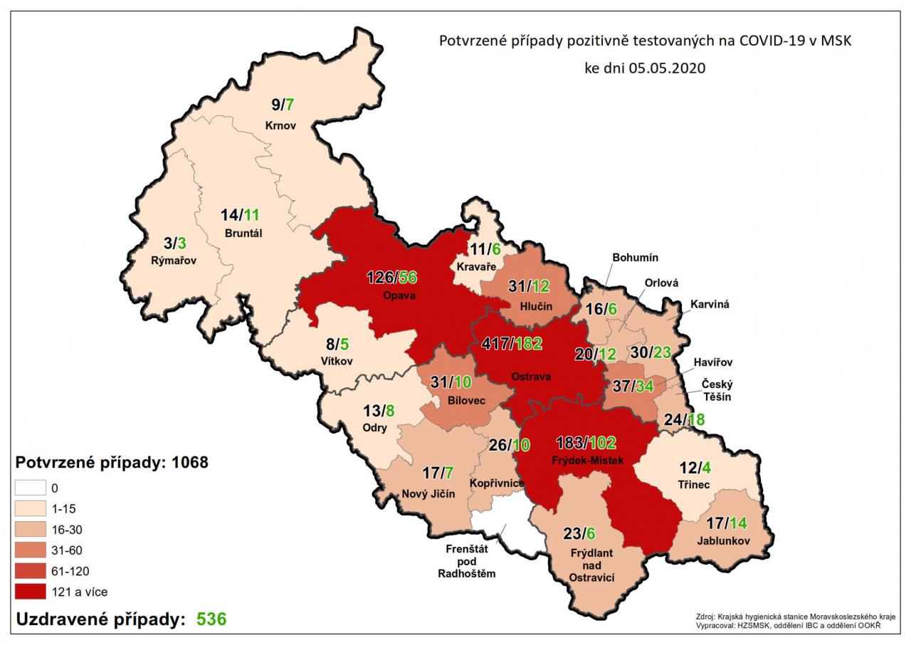 Potvrzené případy testovaných na COVID-19 v MSK 5