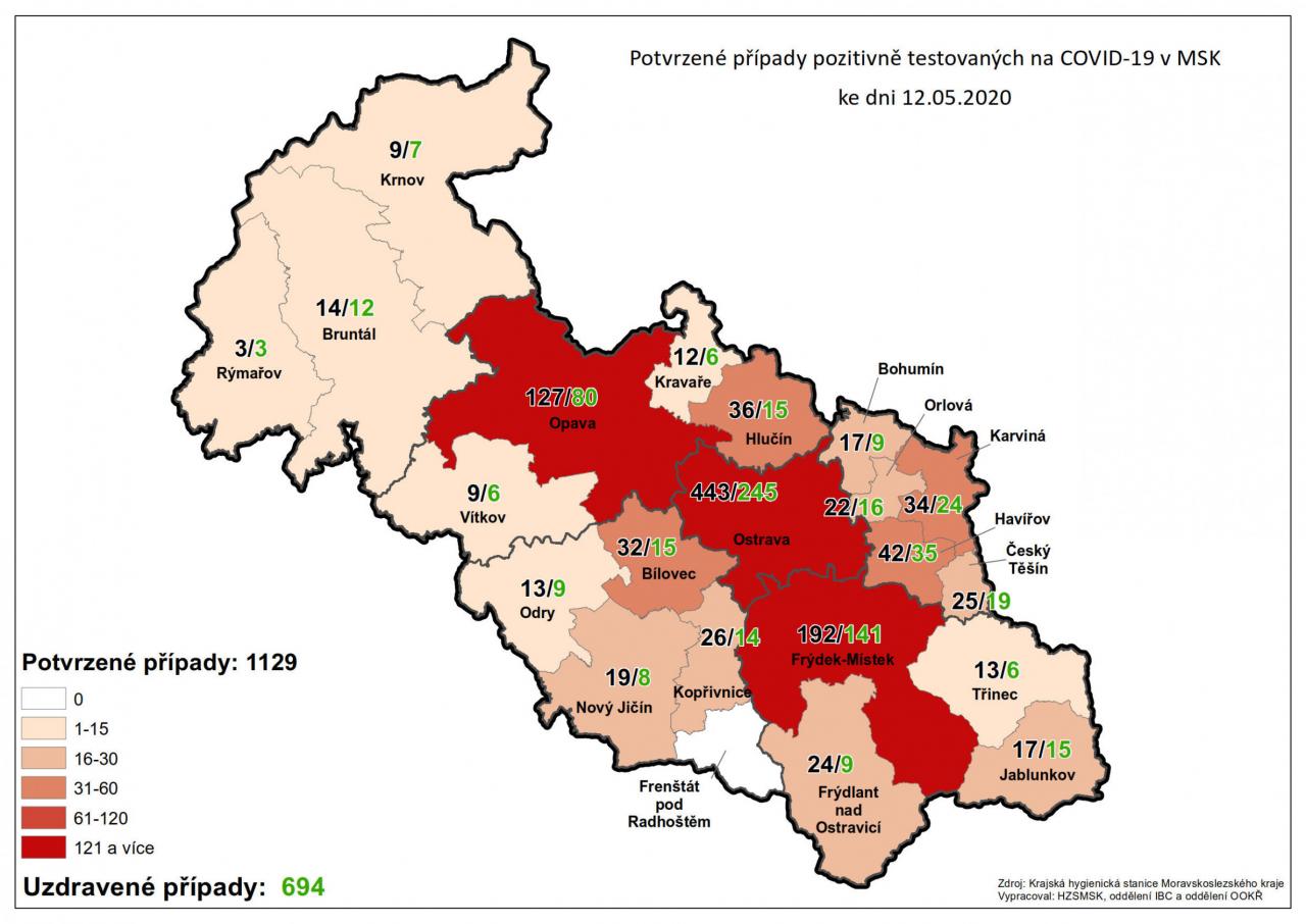 Potvrzené případy testovaných na COVID-19 v MSK 12