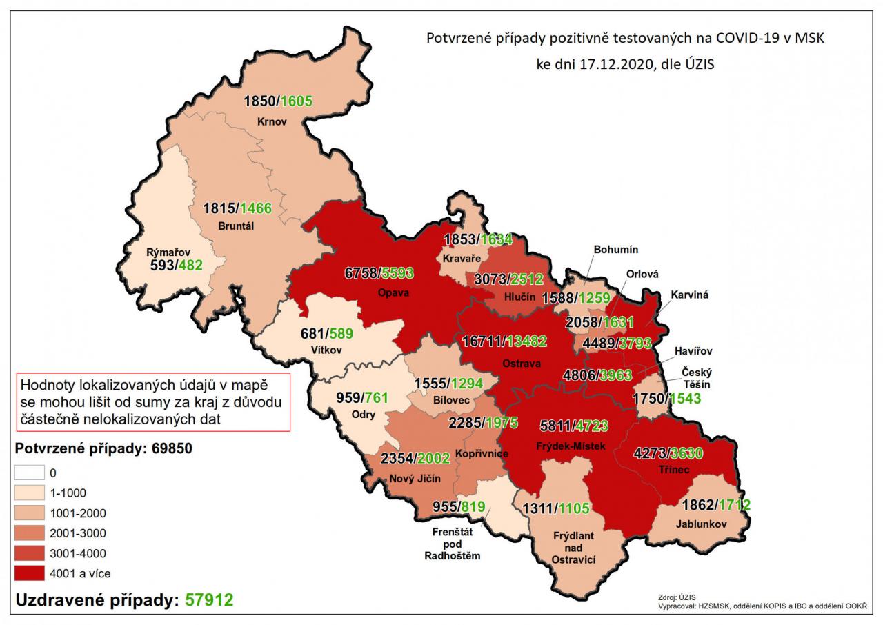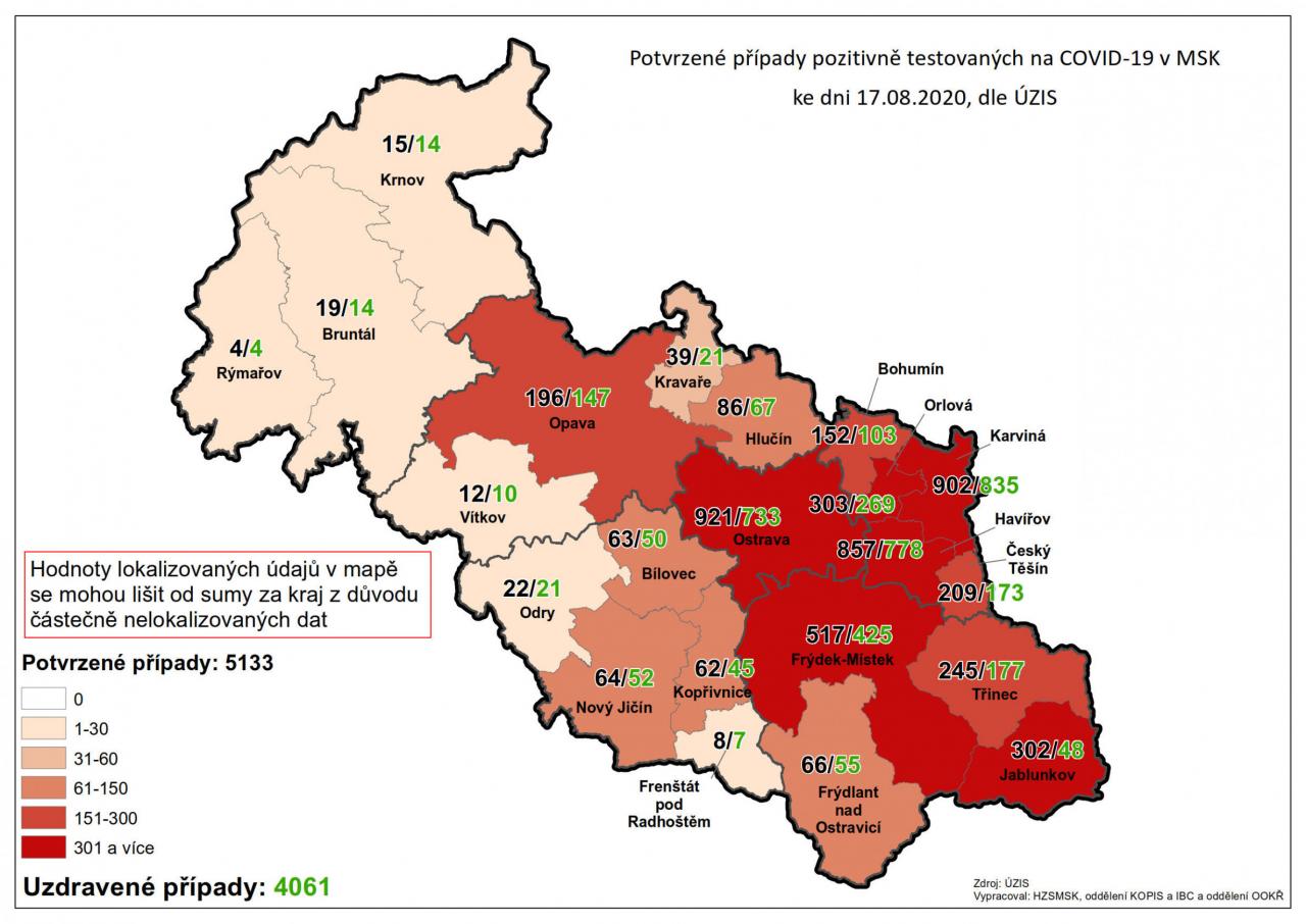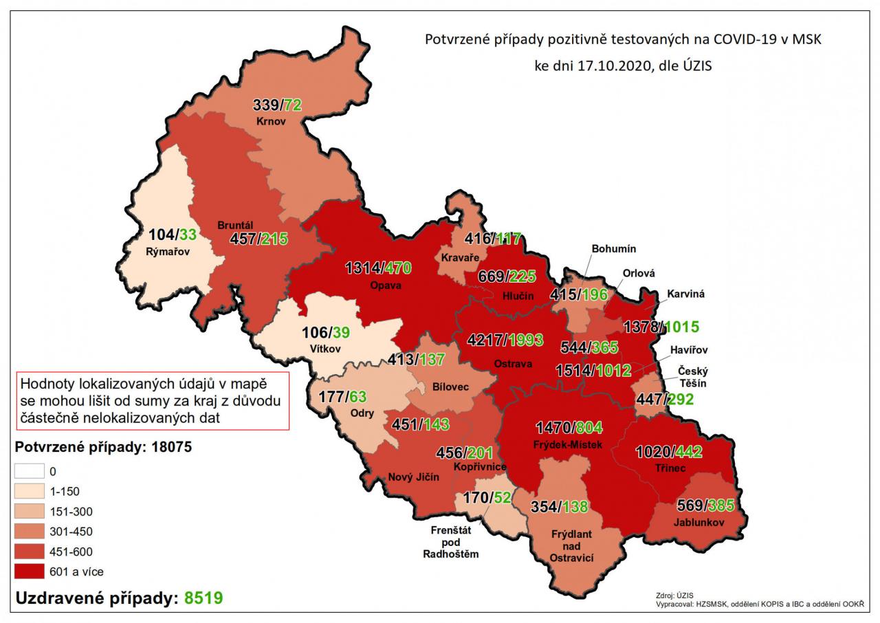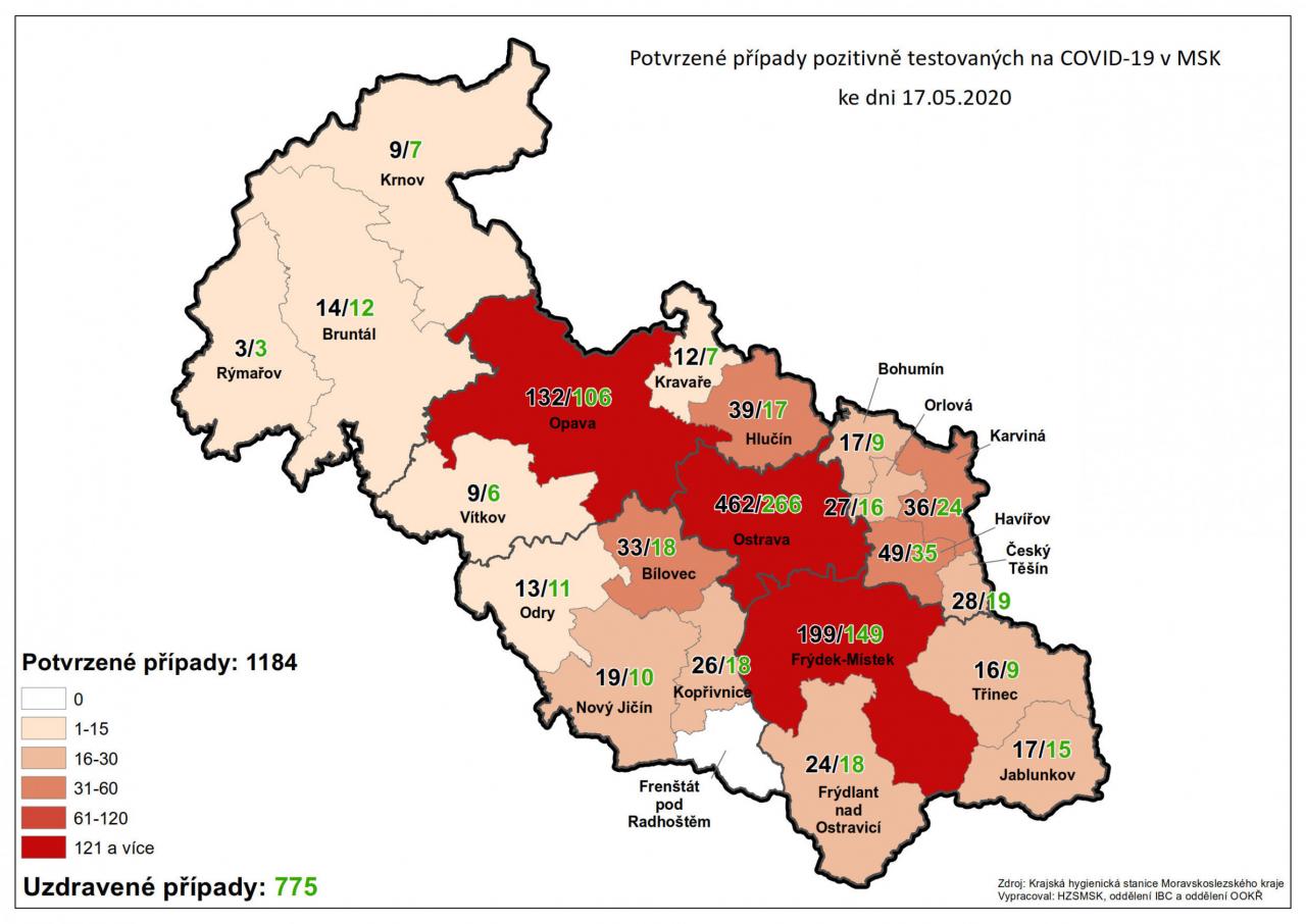 Potvrzené případy testovaných na COVID-19 v MSK 17
