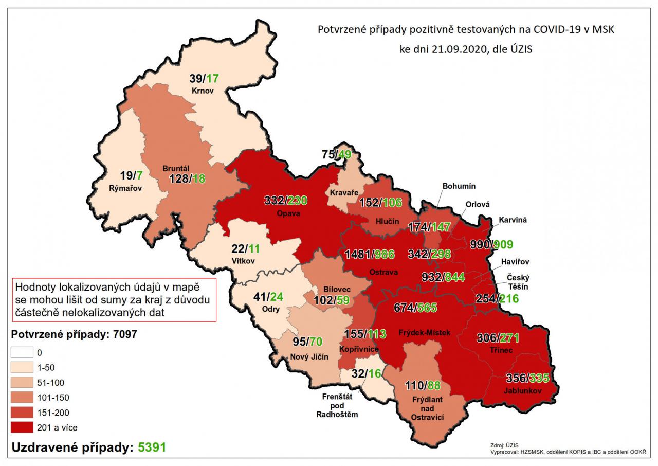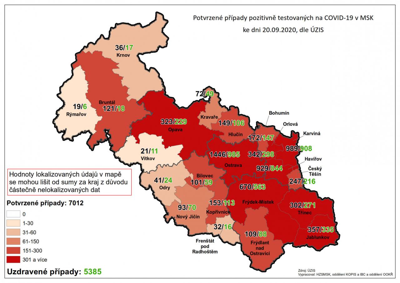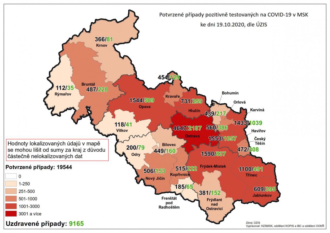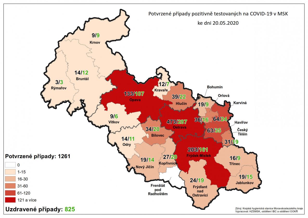 Potvrzené případy testovaných na COVID-19 v MSK 20