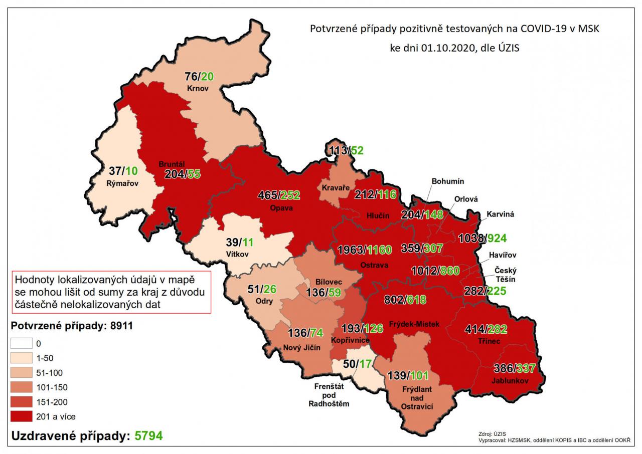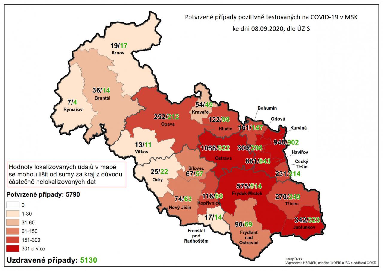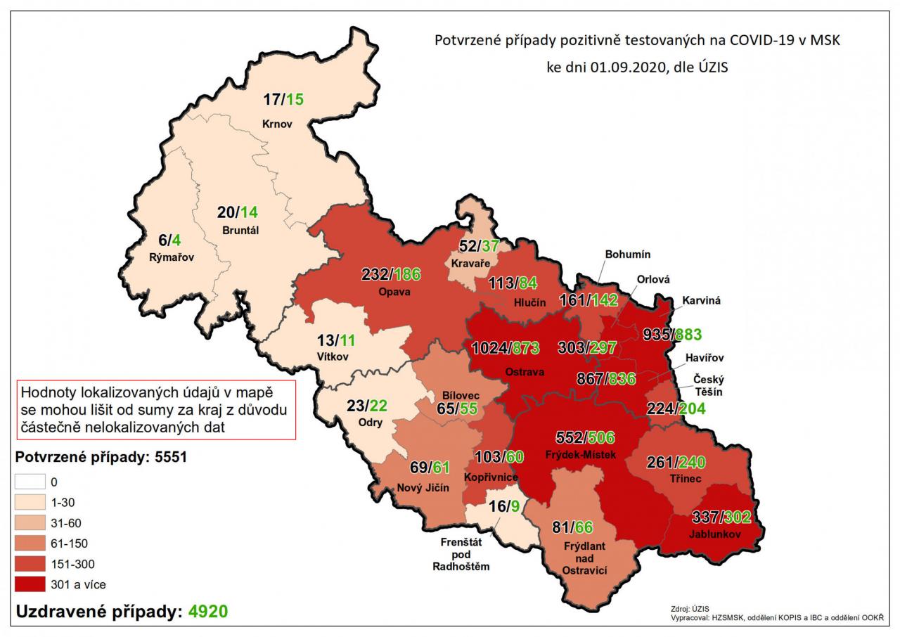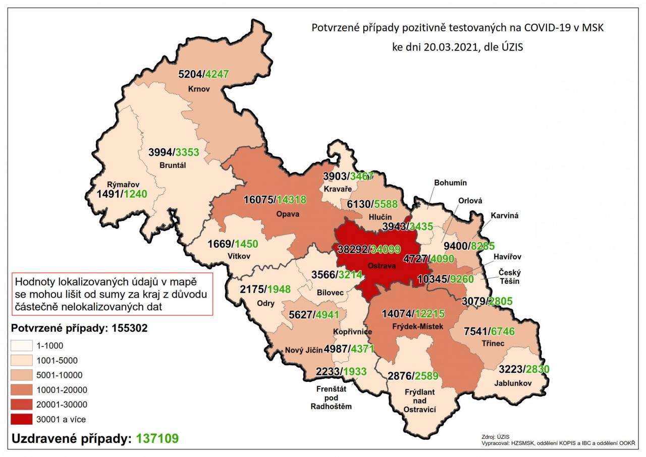 Potvrzené případy testovaných na COVID-19 v MSK 20