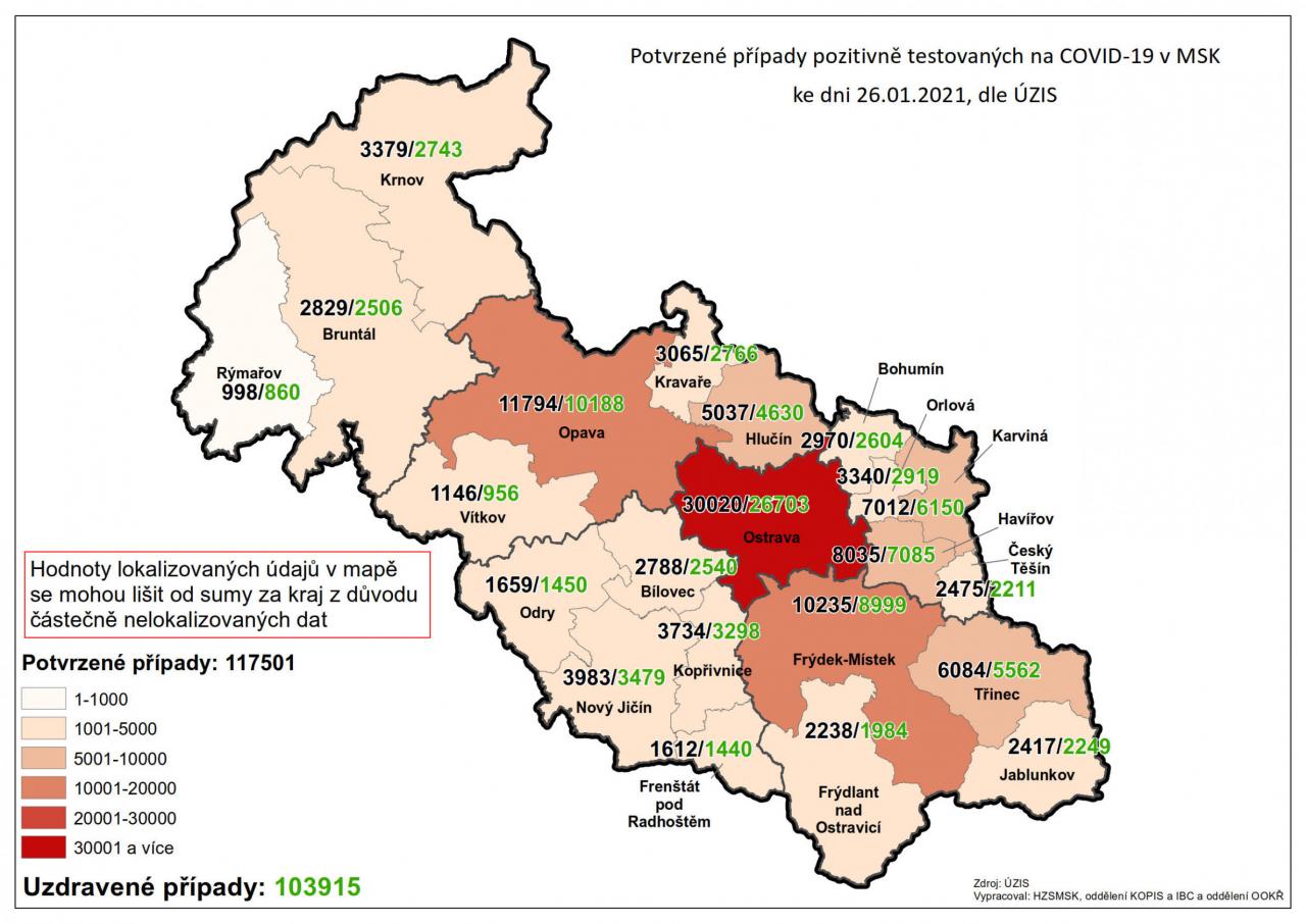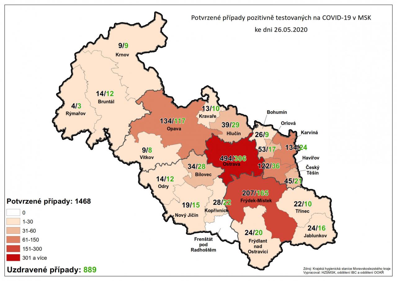 Potvrzené případy testovaných na COVID-19 v MSK 26
