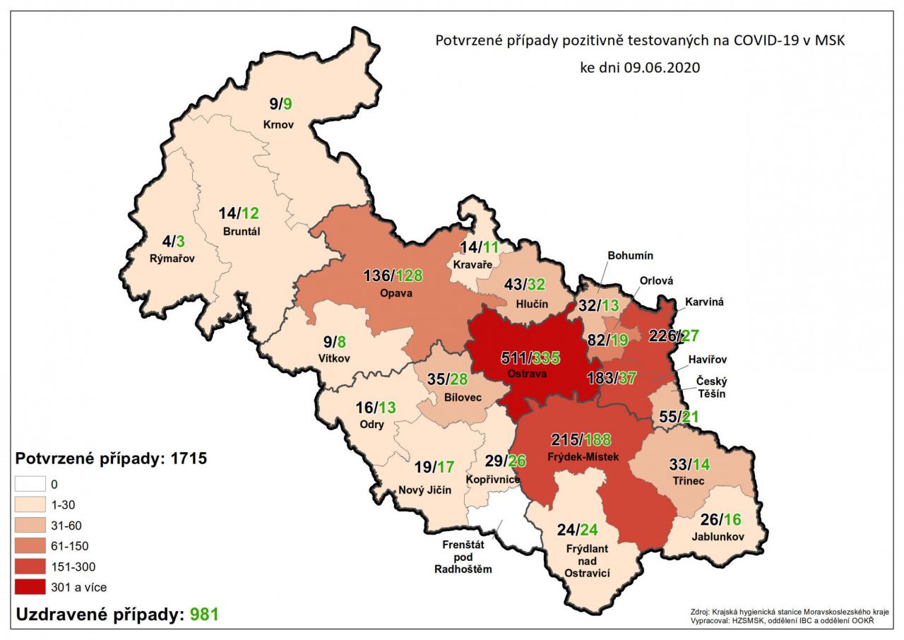 Potvrzené případy testovaných na COVID-19 v MSK 9