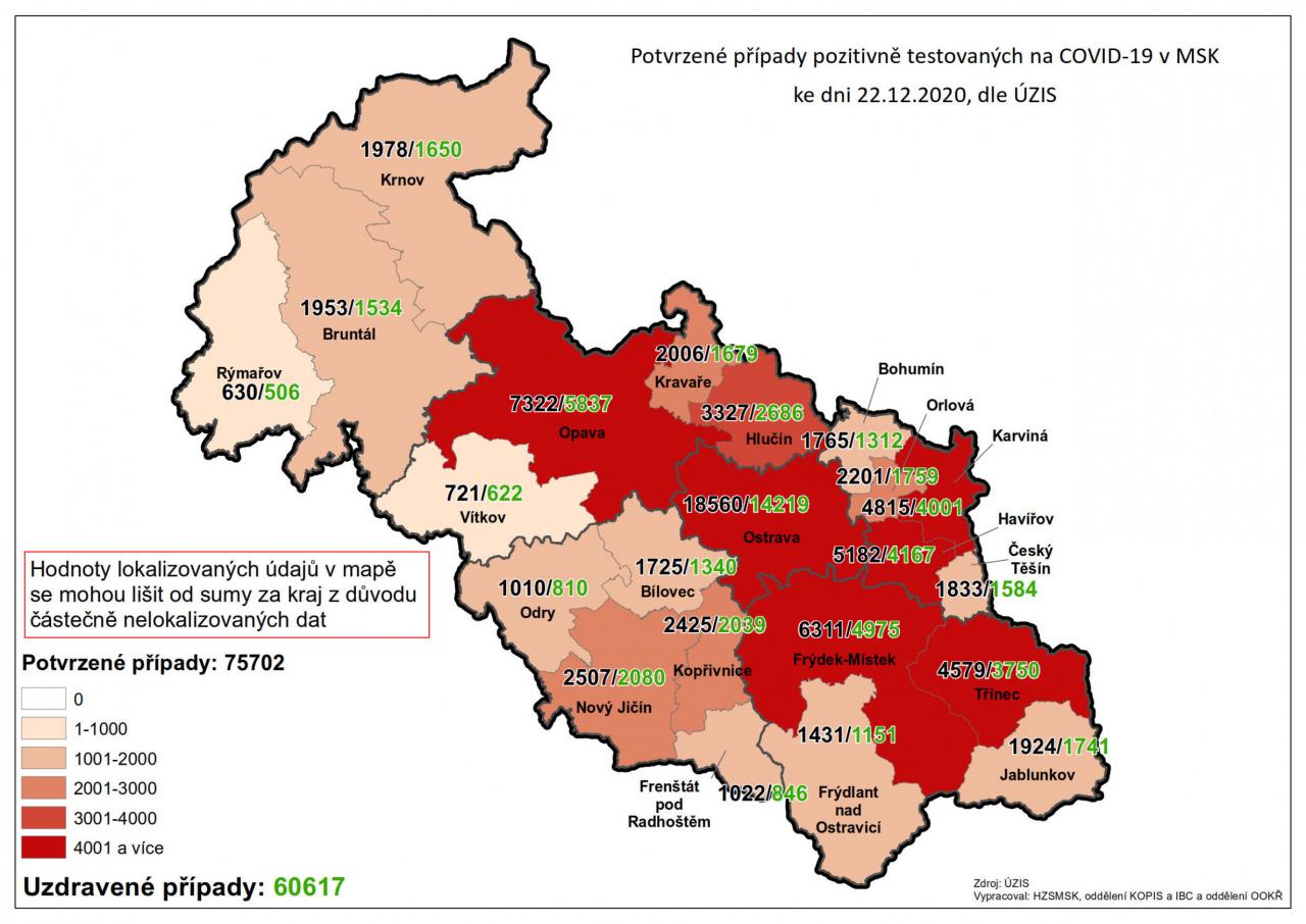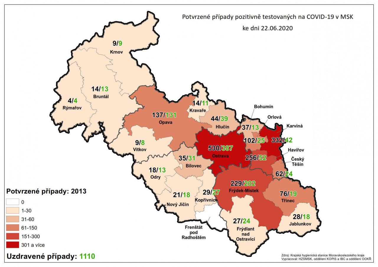 Potvrzené případy testovaných na COVID-19 v MSK 22