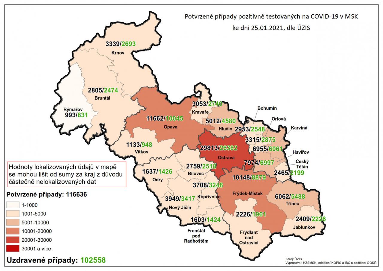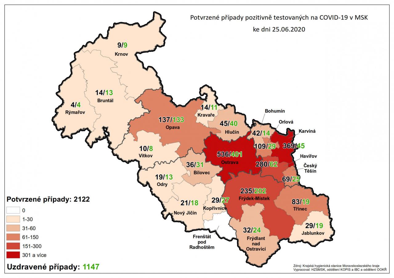 Potvrzené případy testovaných na COVID-19 v MSK 25