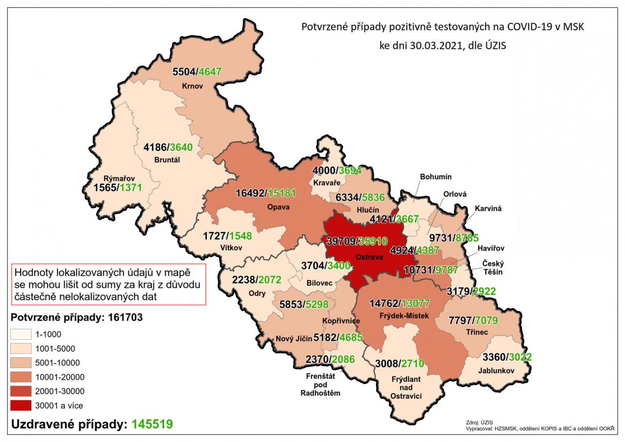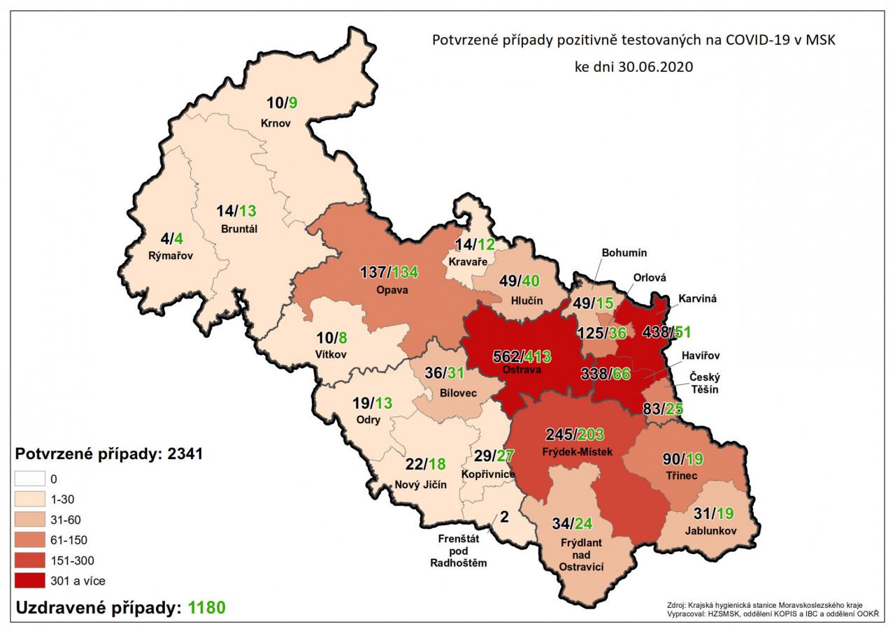 Potvrzené případy testovaných na COVID-19 v MSK 30