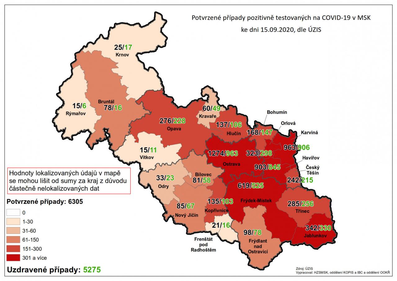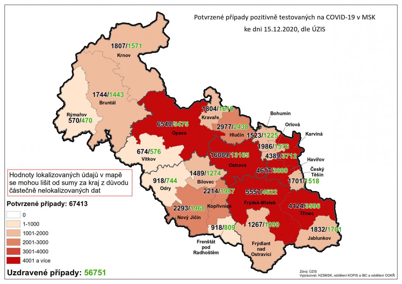 Potvrzené případy testovaných na COVID-19 v MSK 15