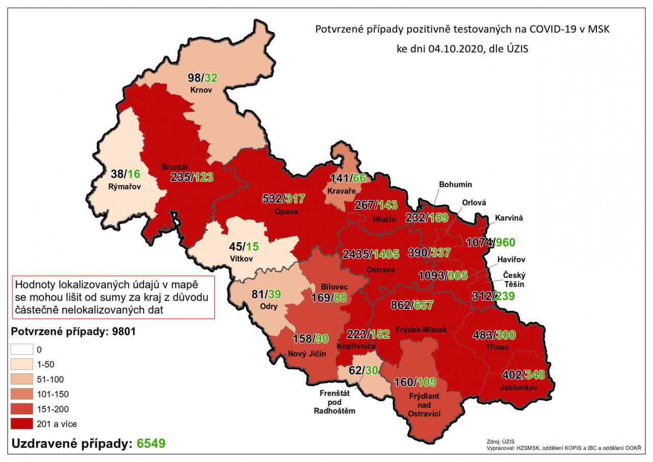 Potvrzené případy testovaných na COVID-19 v MSK 4