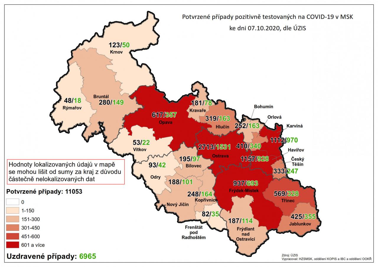 Potvrzené případy testovaných na COVID-19 v MSK 72