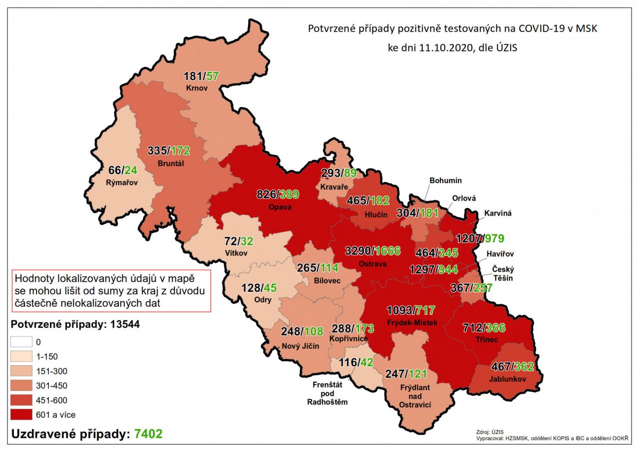 Potvrzené případy testovaných na COVID-19 v MSK 11