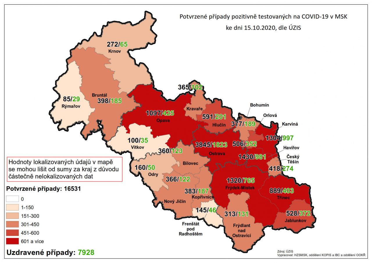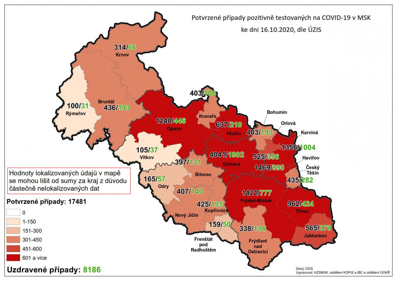Potvrzené případy testovaných na COVID-19 v MSK 16