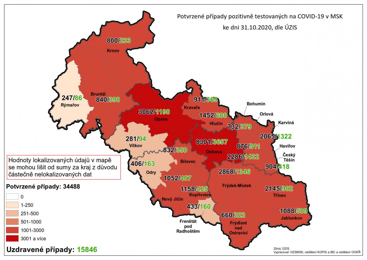 Potvrzené případy testovaných na COVID-19 v MSK 34