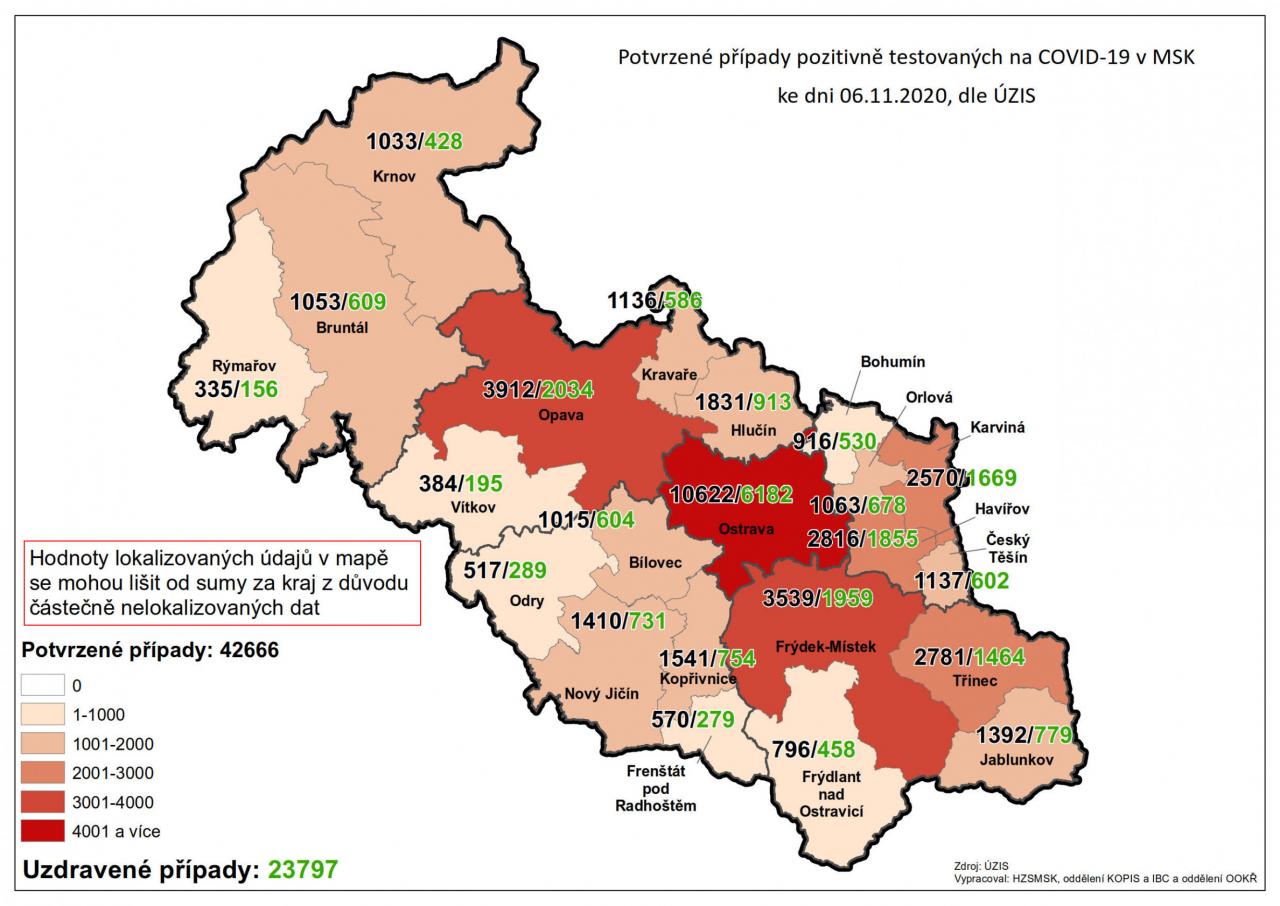 Potvrzené případy testovaných na COVID-19 v MSK 42
