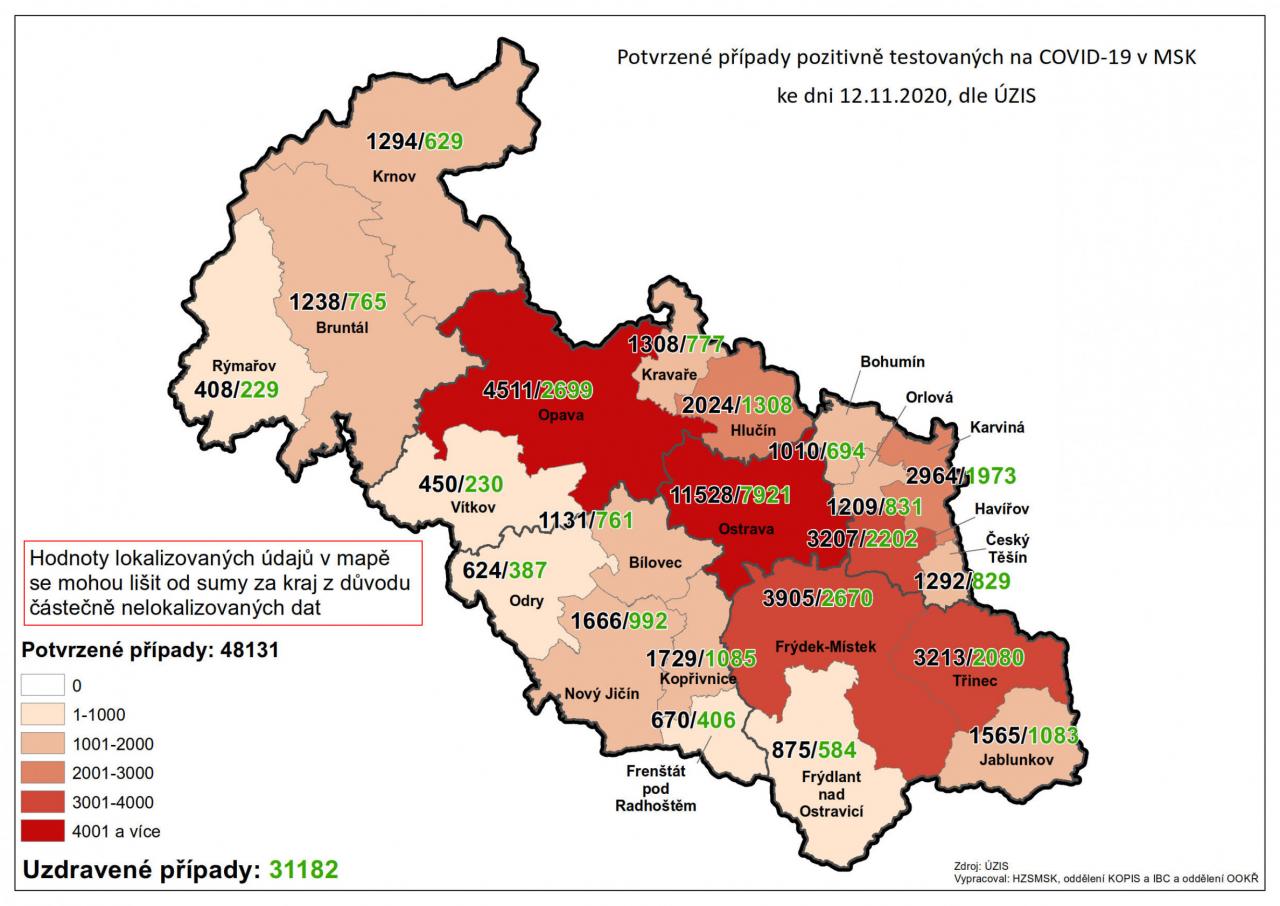 Potvrzené případy testovaných na COVID-19 v MSK 48