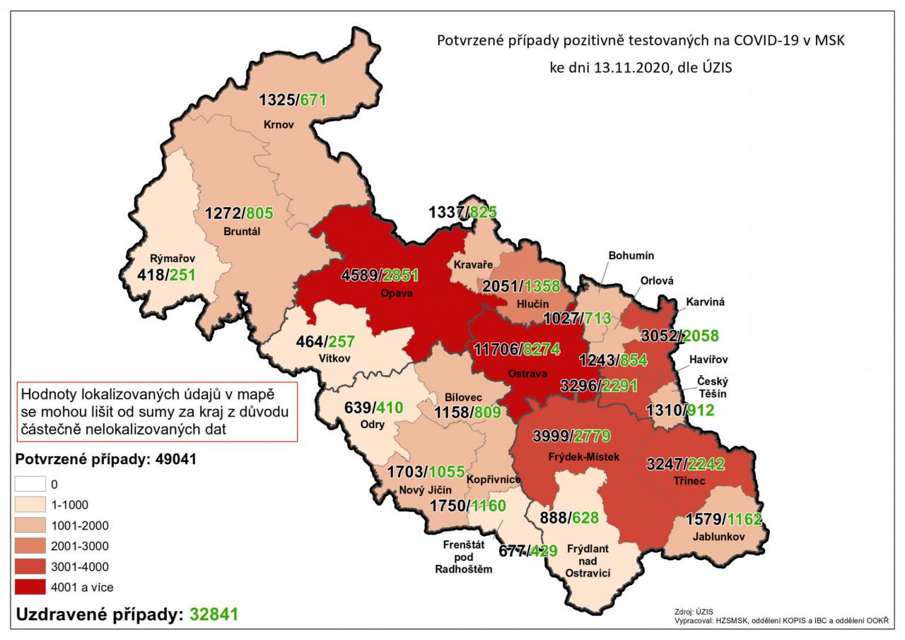 Potvrzené případy testovaných na COVID-19 v MSK 49