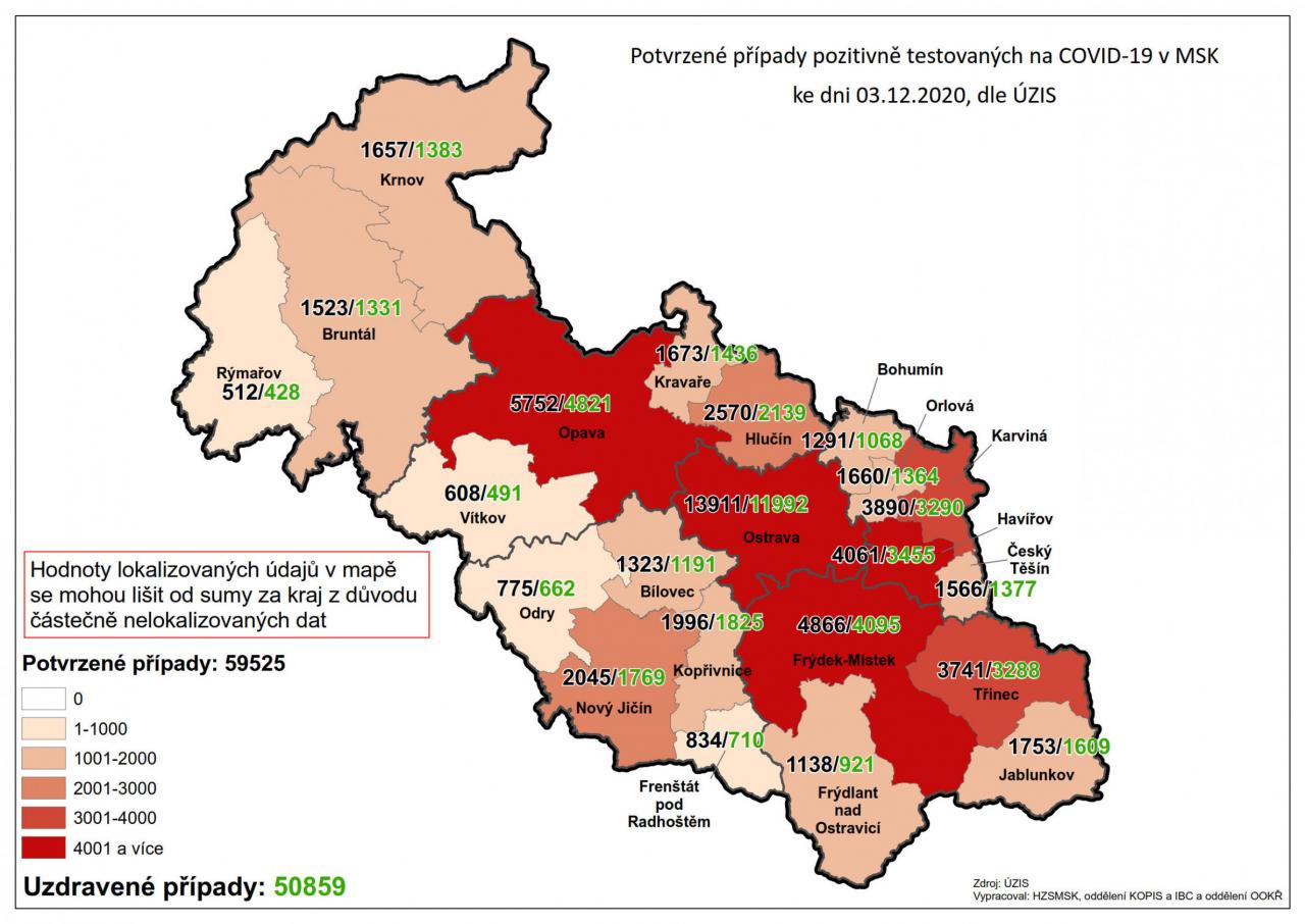 Potvrzené případy testovaných na COVID-19 v MSK 59