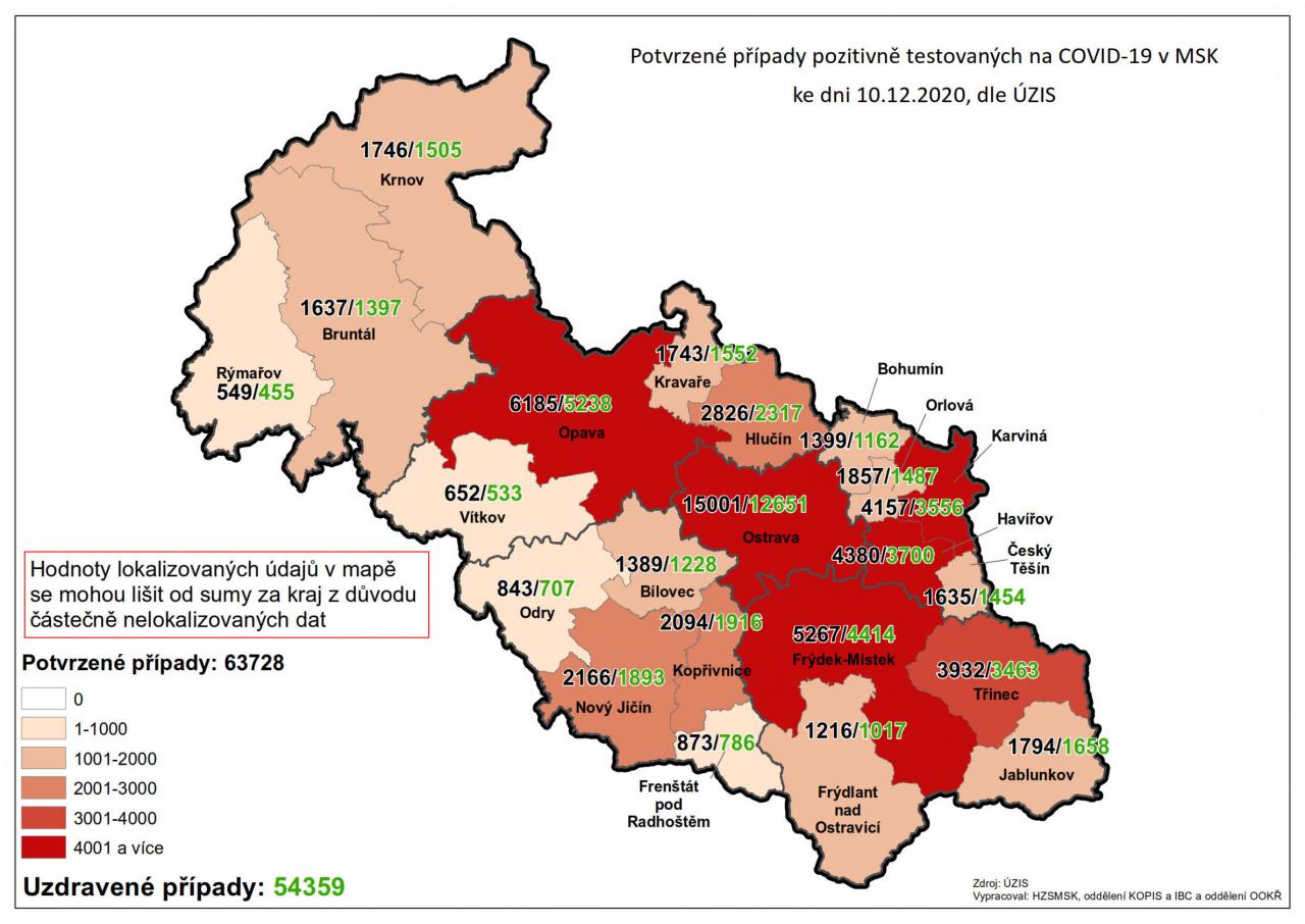Potvrzené případy testovaných na COVID-19 v MSK 63