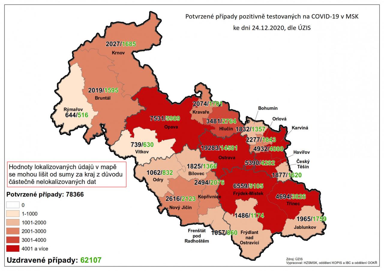 Potvrzené případy testovaných na COVID-19 v MSK 78