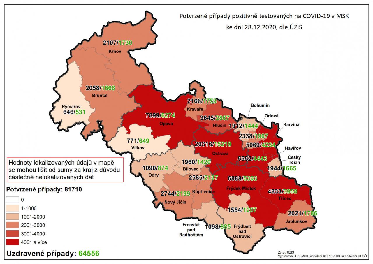 Potvrzené případy testovaných na COVID-19 v MSK 81