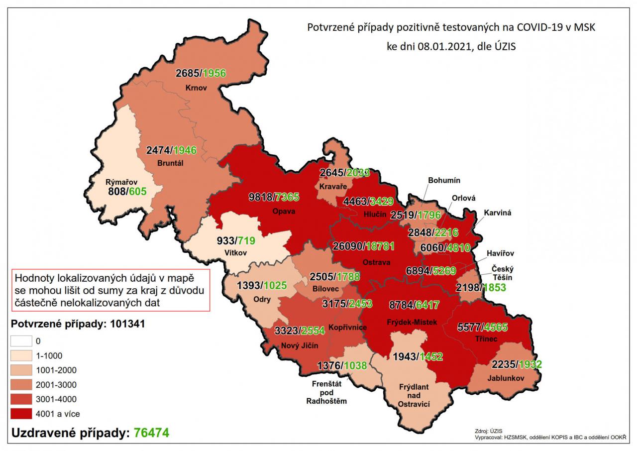 Potvrzené případy testovaných na COVID-19 v MSK 8