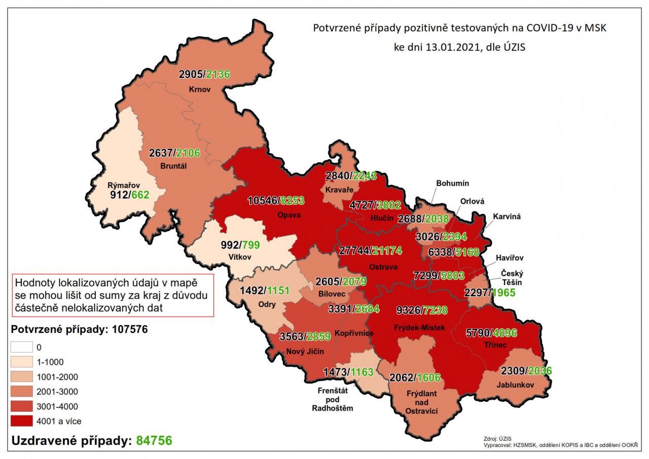 Potvrzené případy testovaných na COVID-19 v MSK 13