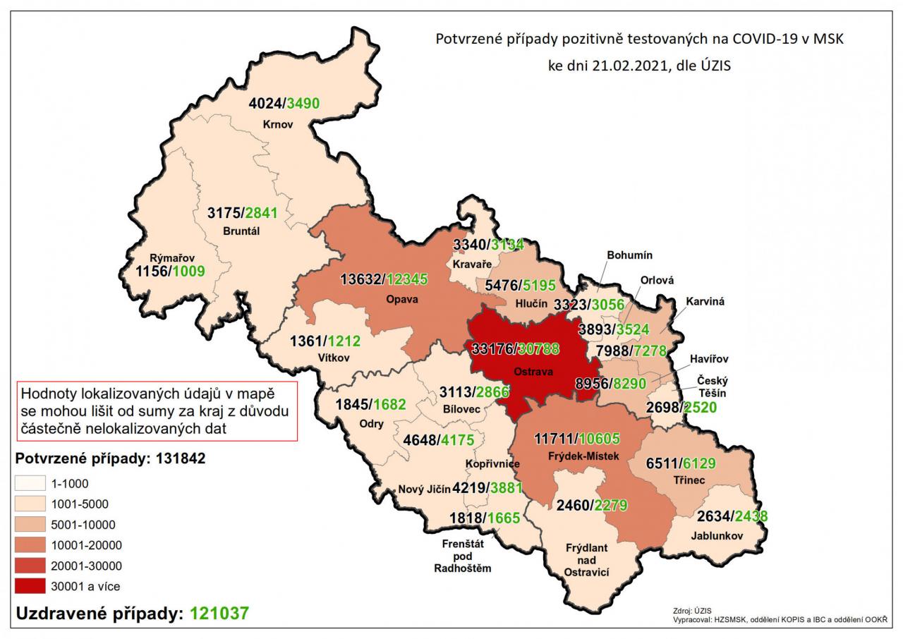 Potvrzené případy testovaných na COVID-19 v MSK 21