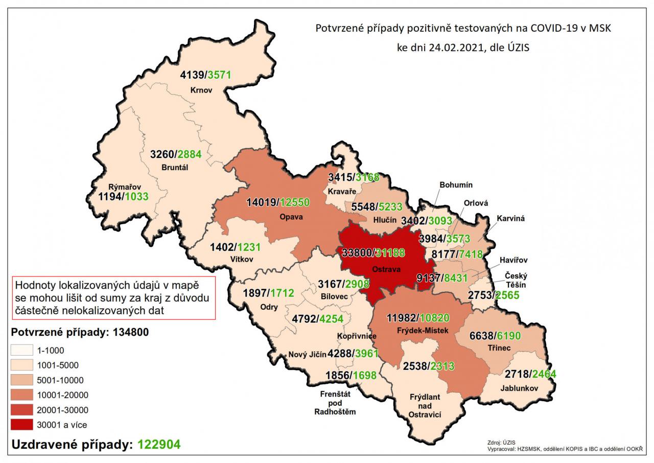 Potvrzené případy testovaných na COVID-19 v MSK 24