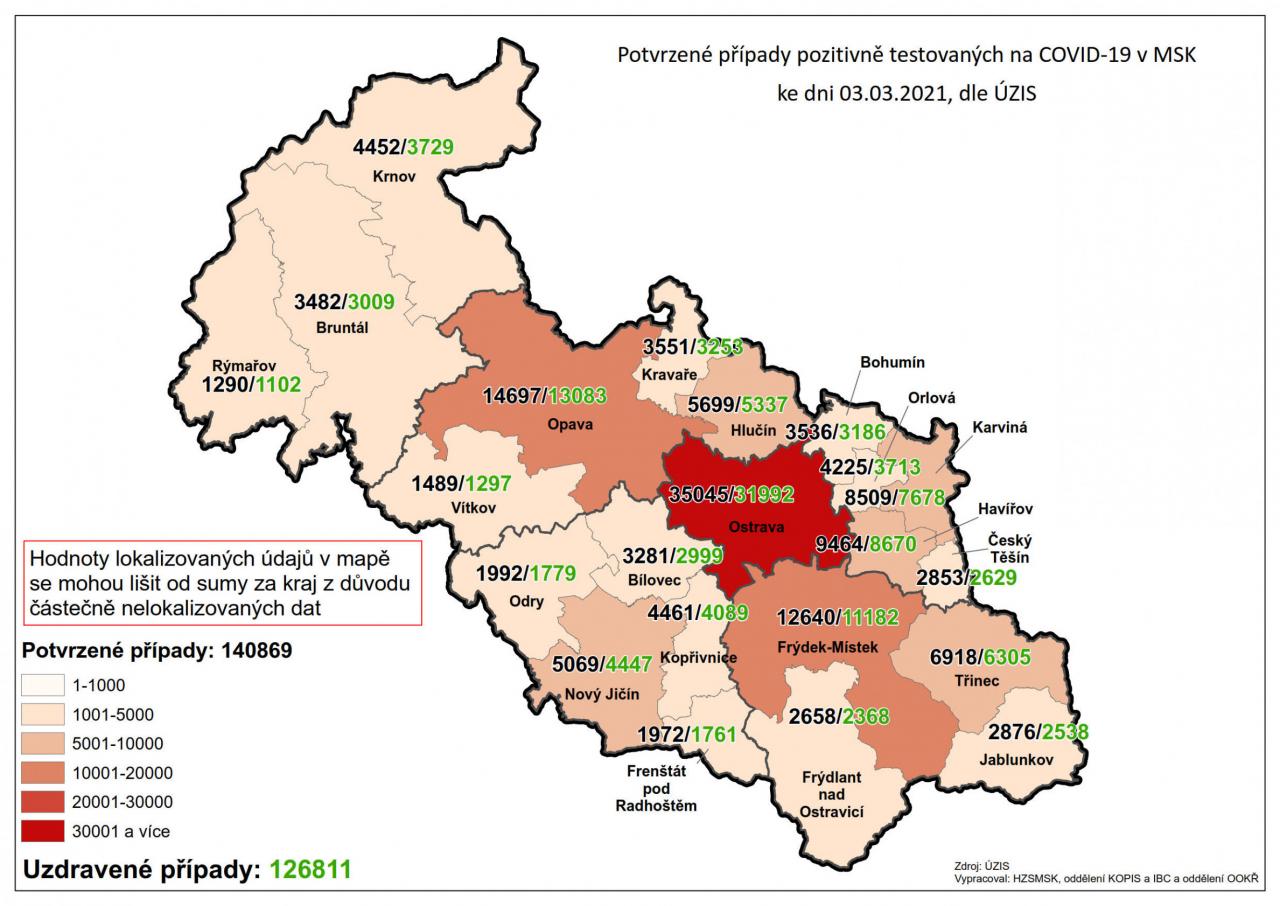 Potvrzené případy testovaných na COVID-19 v MSK 3