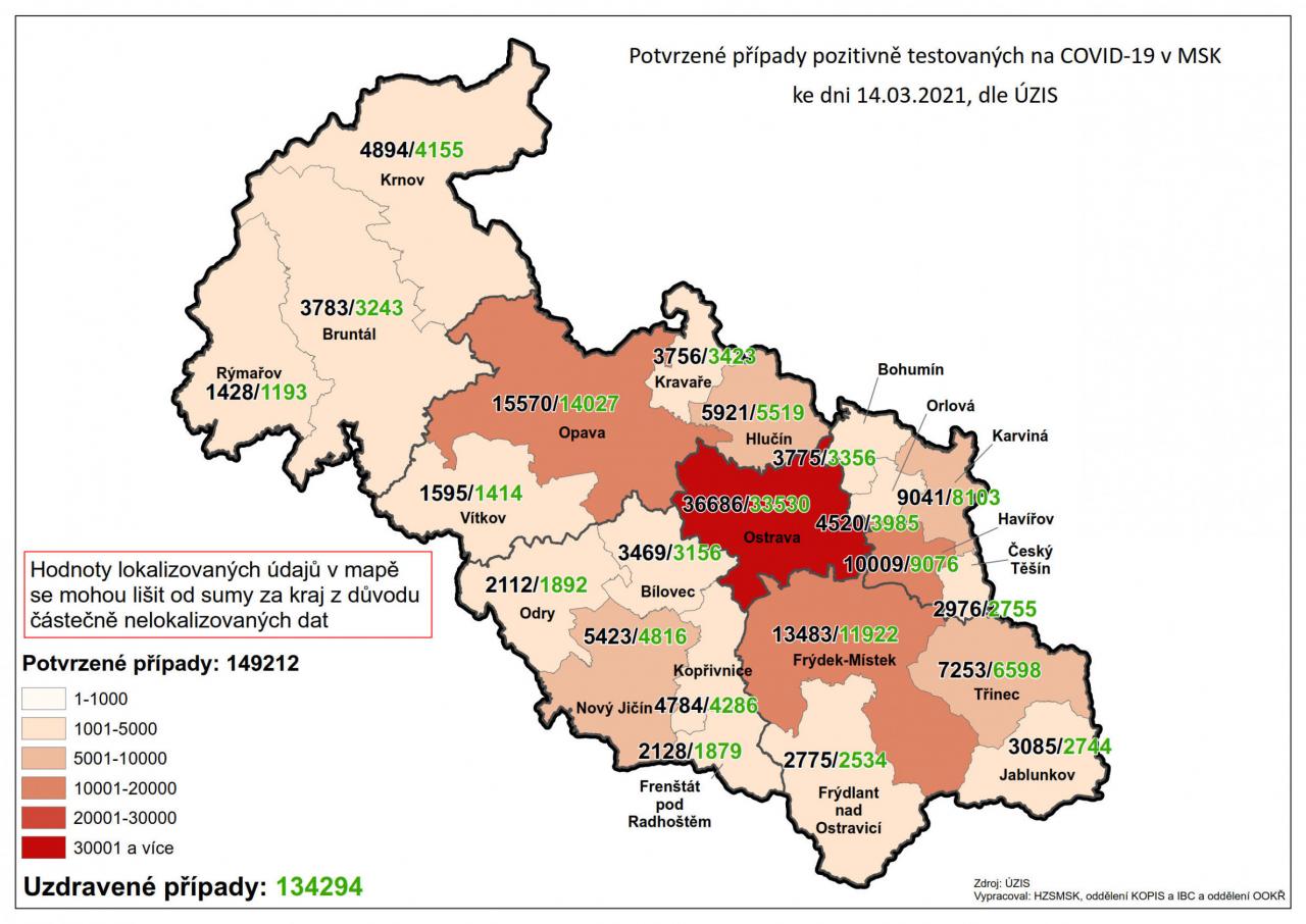 Potvrzené případy testovaných na COVID-19 v MSK 14