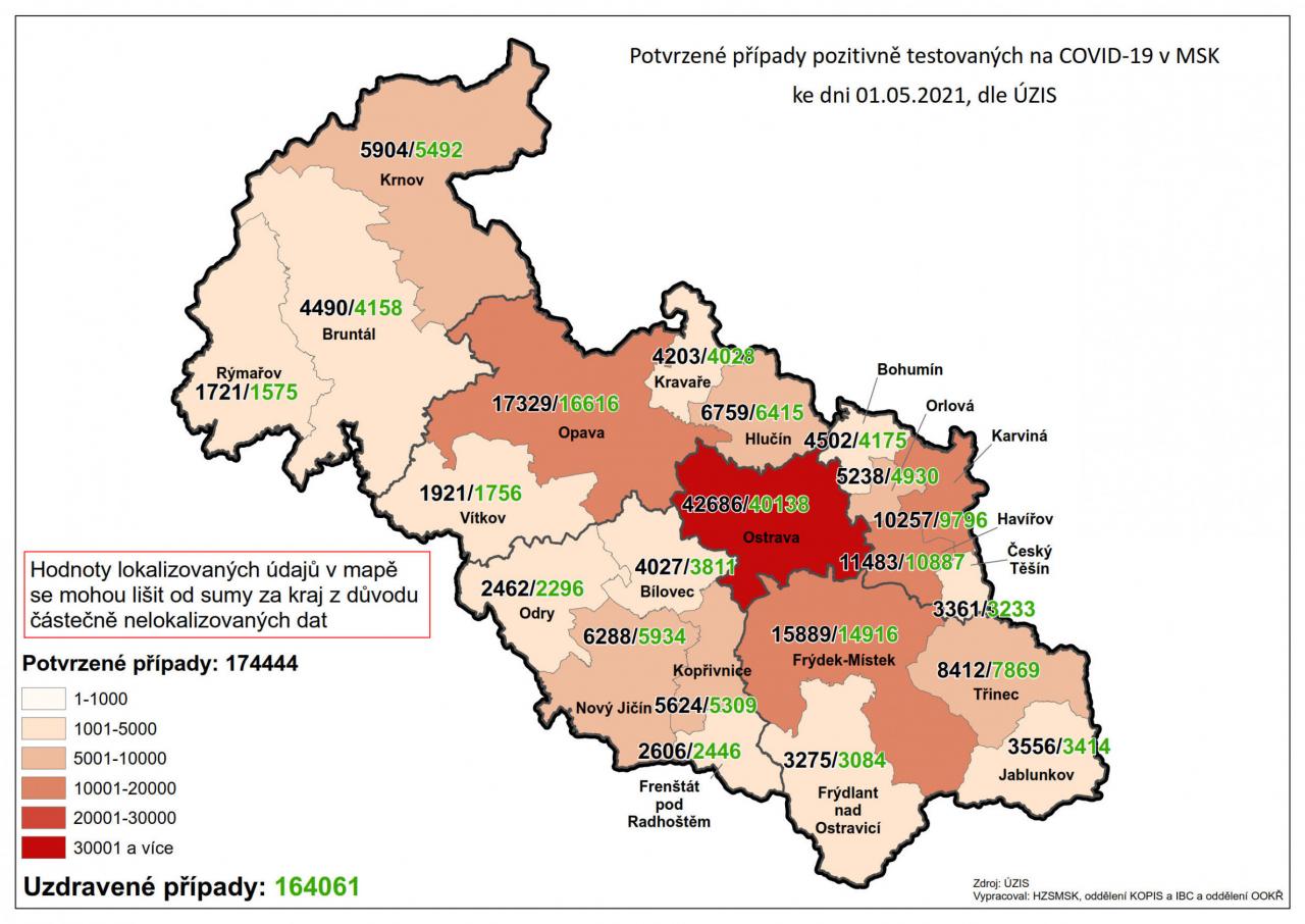 Potvrzené případy testovaných na COVID-19 v MSK 174