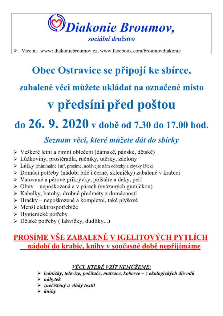 Zabalené věci můžete ukládat na označené místo v předsíni před poštou do 26. 9. 2020 v době od 7.30 do 17.00 hod.