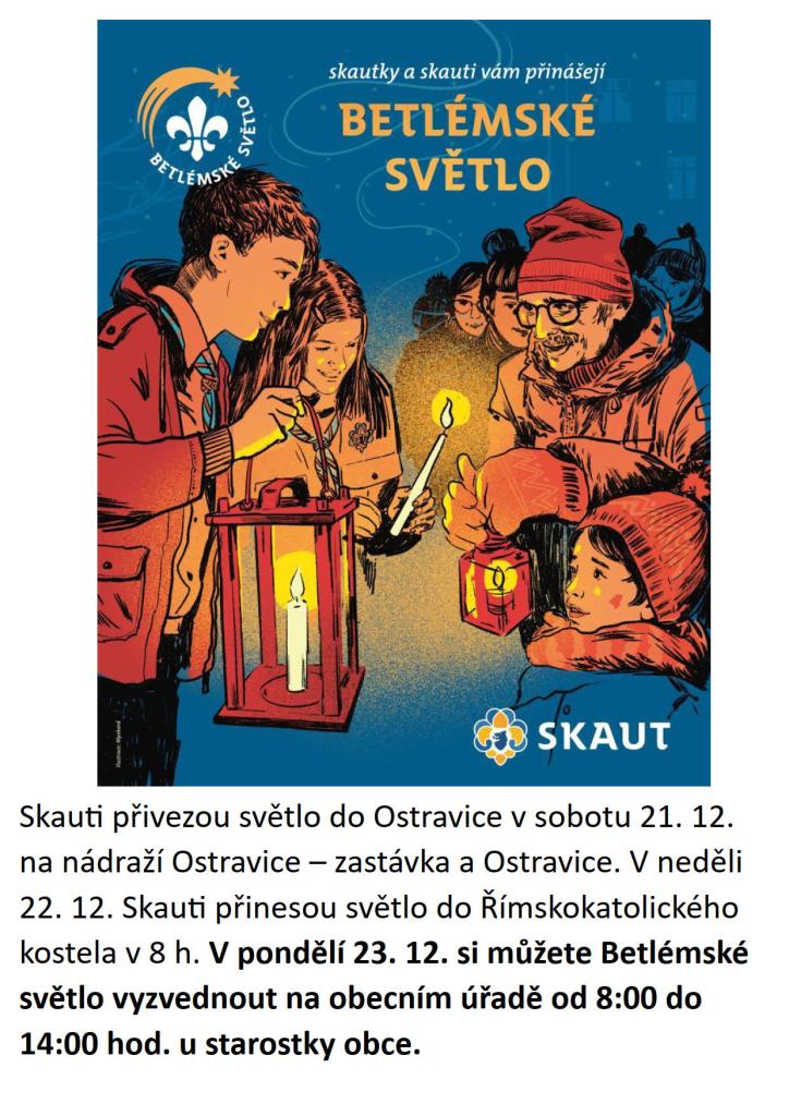 V pondělí 23. prosince bude světlo k dispozici na obecním úřadě u starostky od 8:00 do 14:00 hodin.