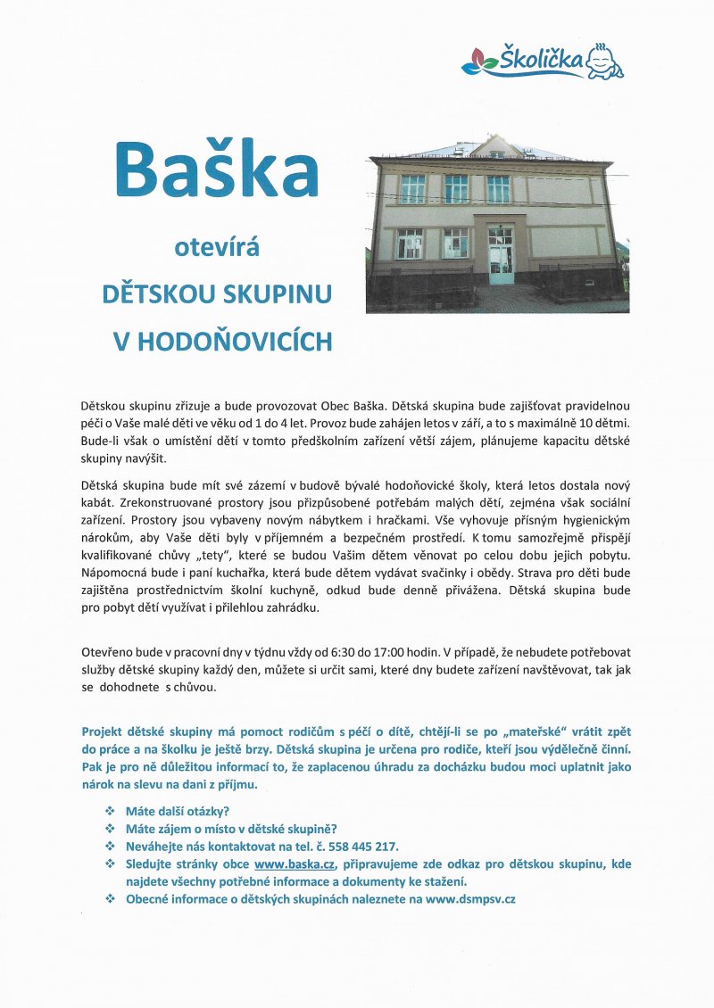 Baška otevírá dětskou skupinu v Hodoňovicích