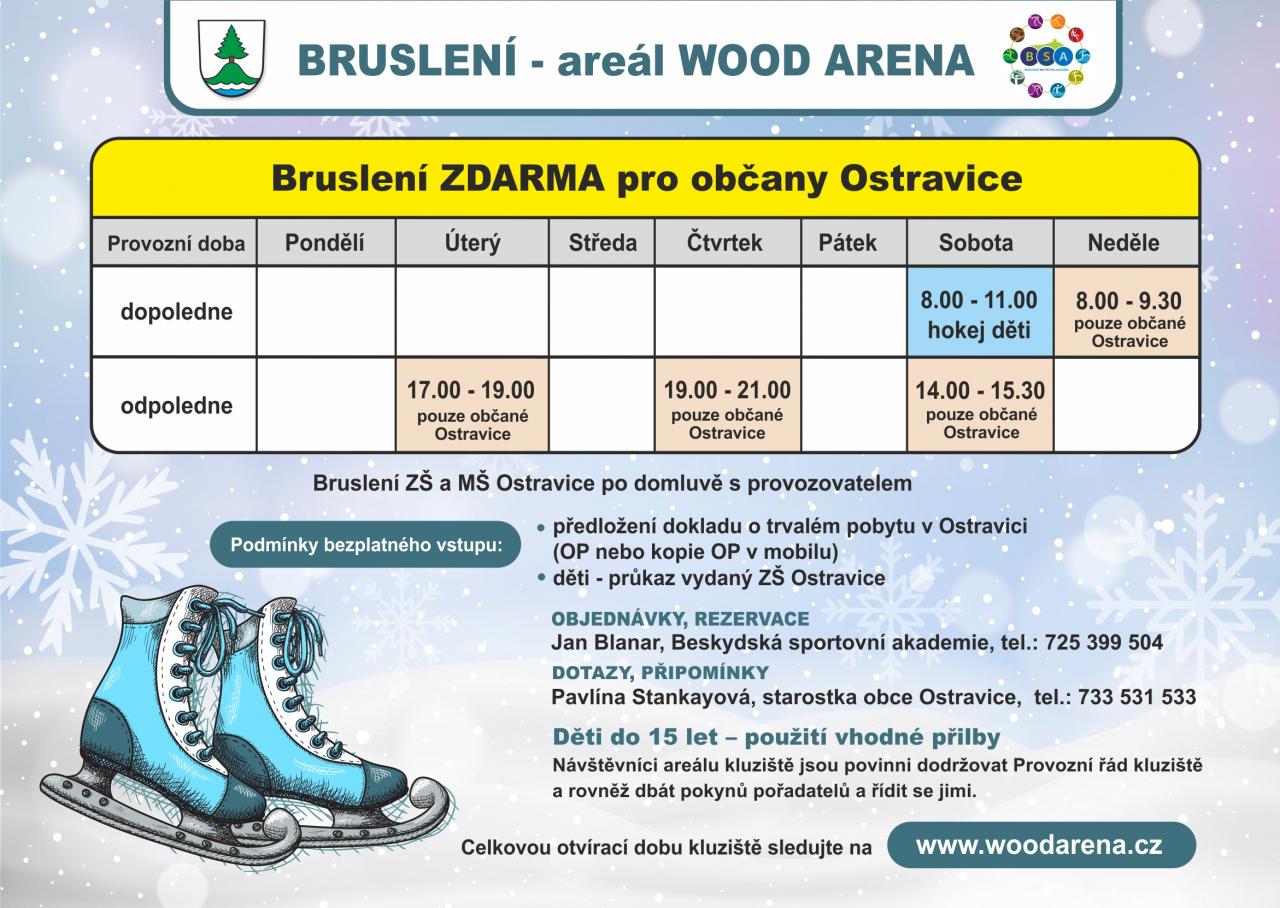 Přijďte si zabruslit do Wood areny v časech dle rozpisu.