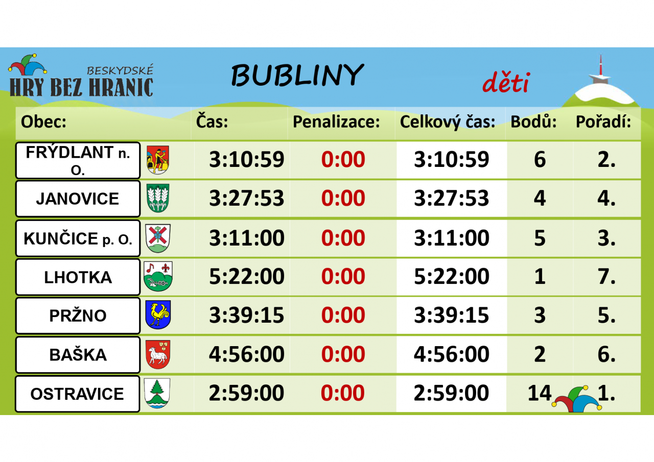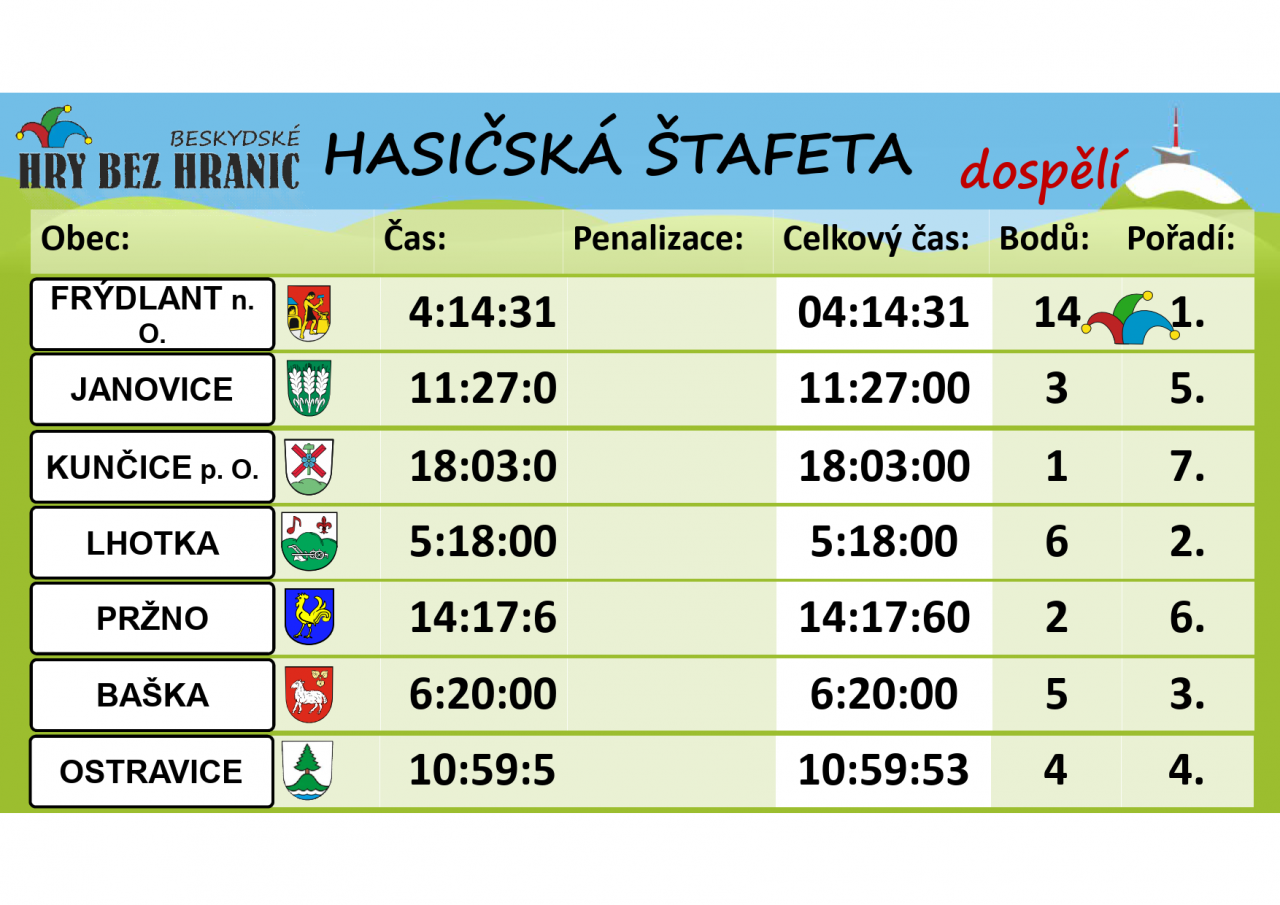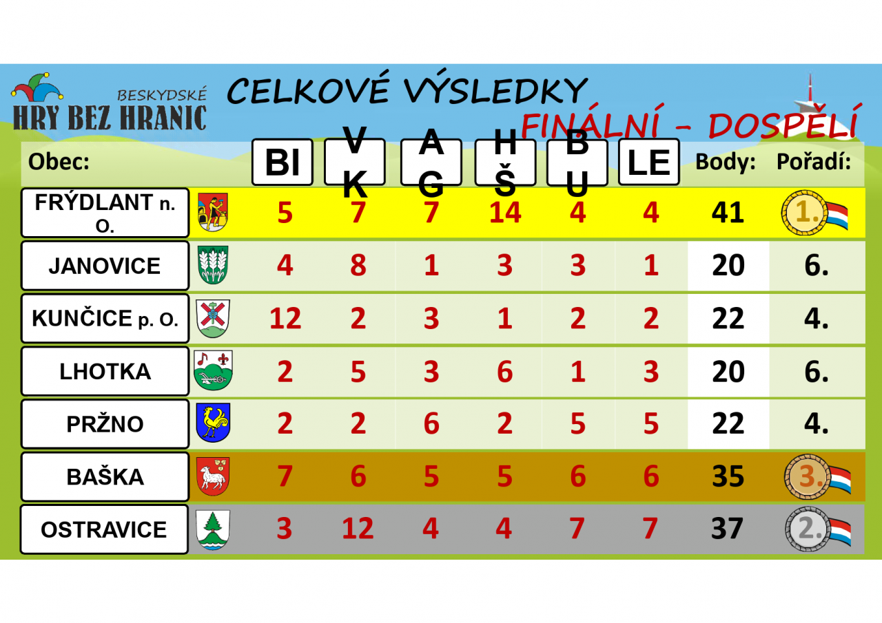 Vzájemně spolu soutěžily obecní týmy z mikroregionu Frýdlantsko-Beskydy. Závody byly založené na vtipných soutěžích, jejichž cílem je hlavně pobavit a zasmát se. Hry okořenila i zdravá rivalita mezi obcemi.