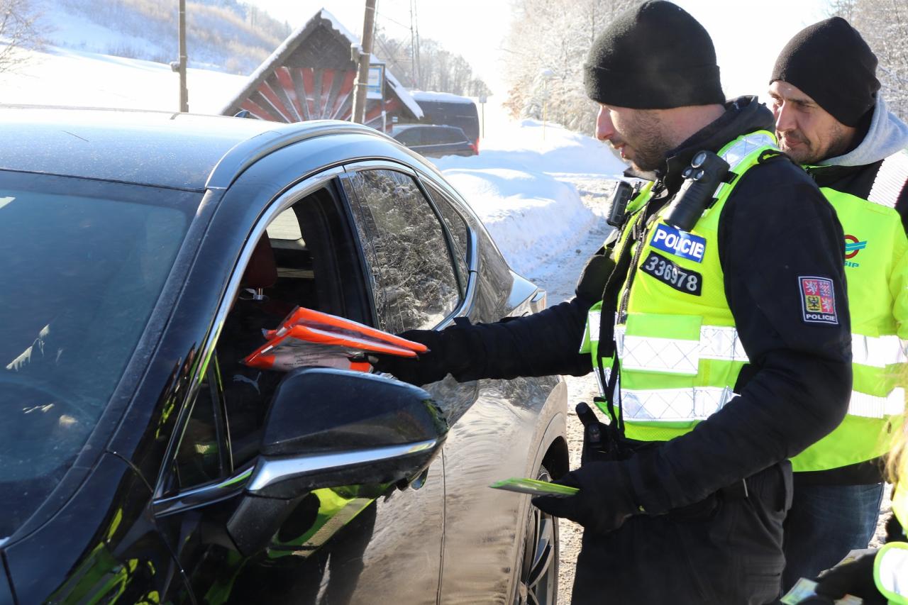 Sněhová nadílka v posledních dnech značně komplikuje dopravní situaci na našich silnicích. Led a sníh na vozovce, zejména v  kombinaci s nepřiměřenou rychlostí, mohou být hlavní příčinou vzniku dopravních nehod. Na to, že je potřeba si v tomto počasí počínat za volantem obzvlášť opatrně a dodržovat pravidla bezpečné jízdy včera upozorňovali řidiče v rámci dopravně preventivní akce novojičínští dopravní policisté s policejními nováčky, kteří v současné době navštěvují základní odbornou přípravu ve Vzdělávacím zařízení Holešov.  Policisté se především zaměřili na kontrolu technického stavu vozidel, zejména pak pneumatik. Tato akce se koná každým rokem a již tradičně se uskutečnila v lokalitě Na Pinduli na Frenštátsku ve spolupráci s krajským koordinátorem BESIP.
