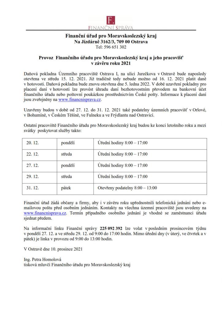 Finanční úřad pro Moravskoslezský kraj informuje